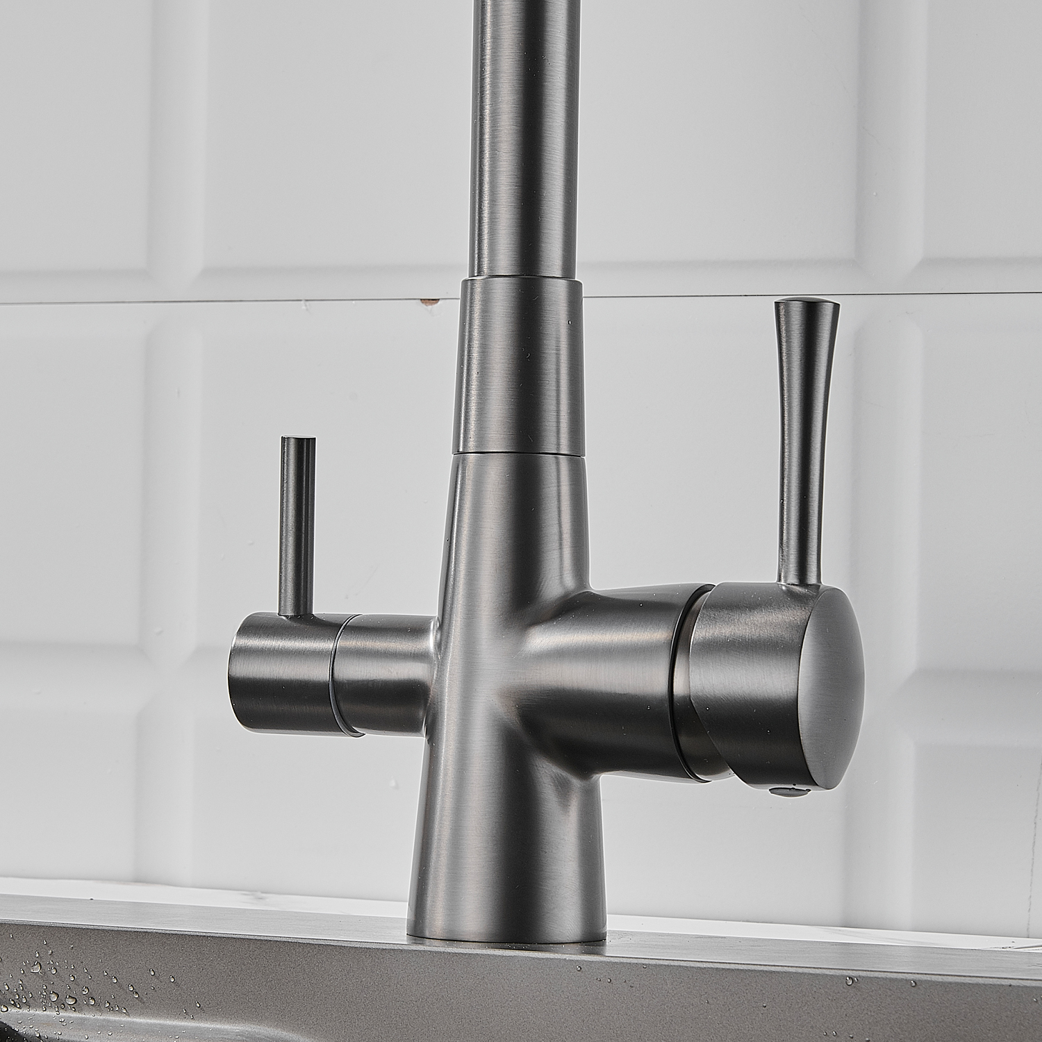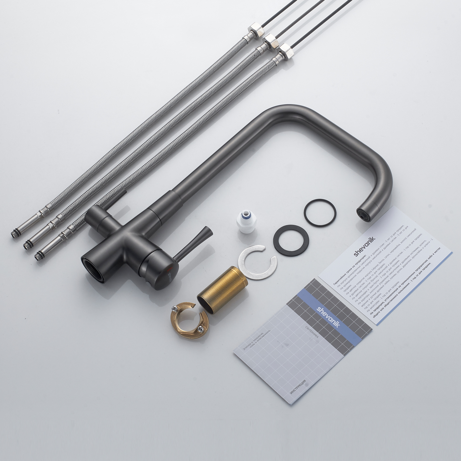 Смеситель для кухни с подключением фильтра Shevanik S528T, оружейная сталь