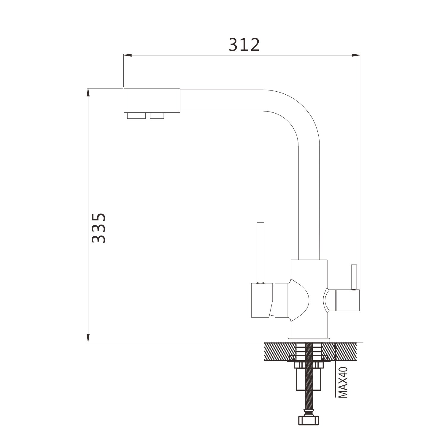 Смеситель для кухни с подключением фильтра Shevanik S868H, черный. Управление: рычажное. Вращение излива: да. Выдвижной излив: нет. Гибкий излив: нет. Высота:33,5.