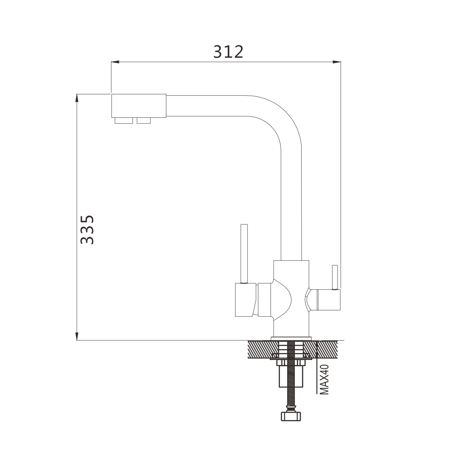 Смеситель для кухни с подключением фильтра Shevanik S868T, оружейная сталь. Управление: рычажное. Вращение излива: да. Выдвижной излив: нет. Гибкий излив: нет. Высота:33,5.