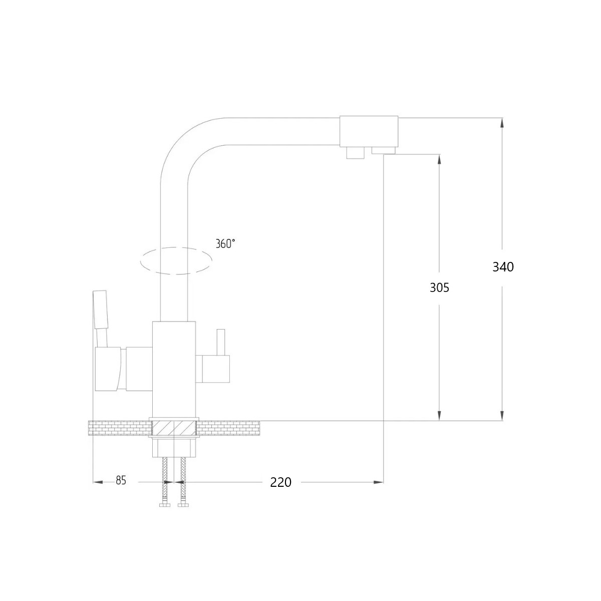 Смеситель для кухни с подключением фильтра воды D-Lin D159315-1, хром