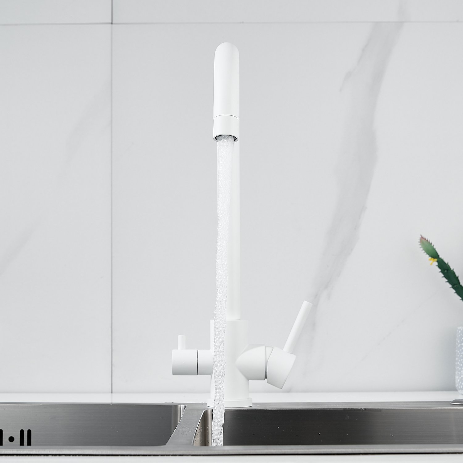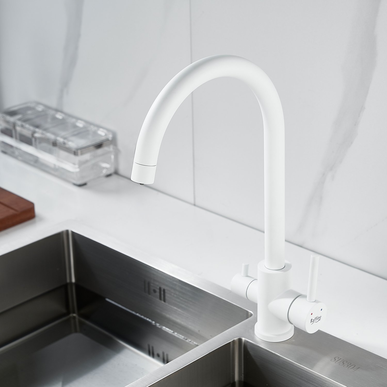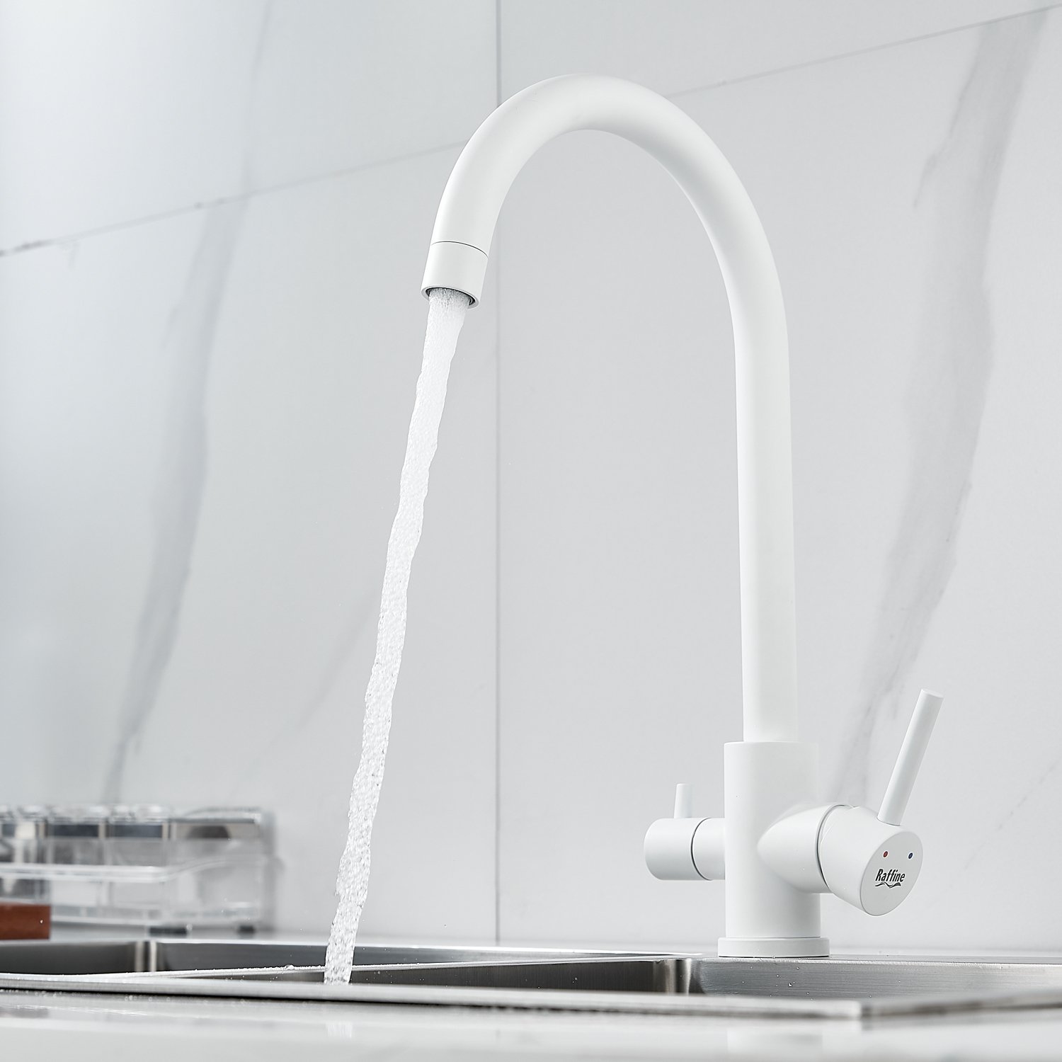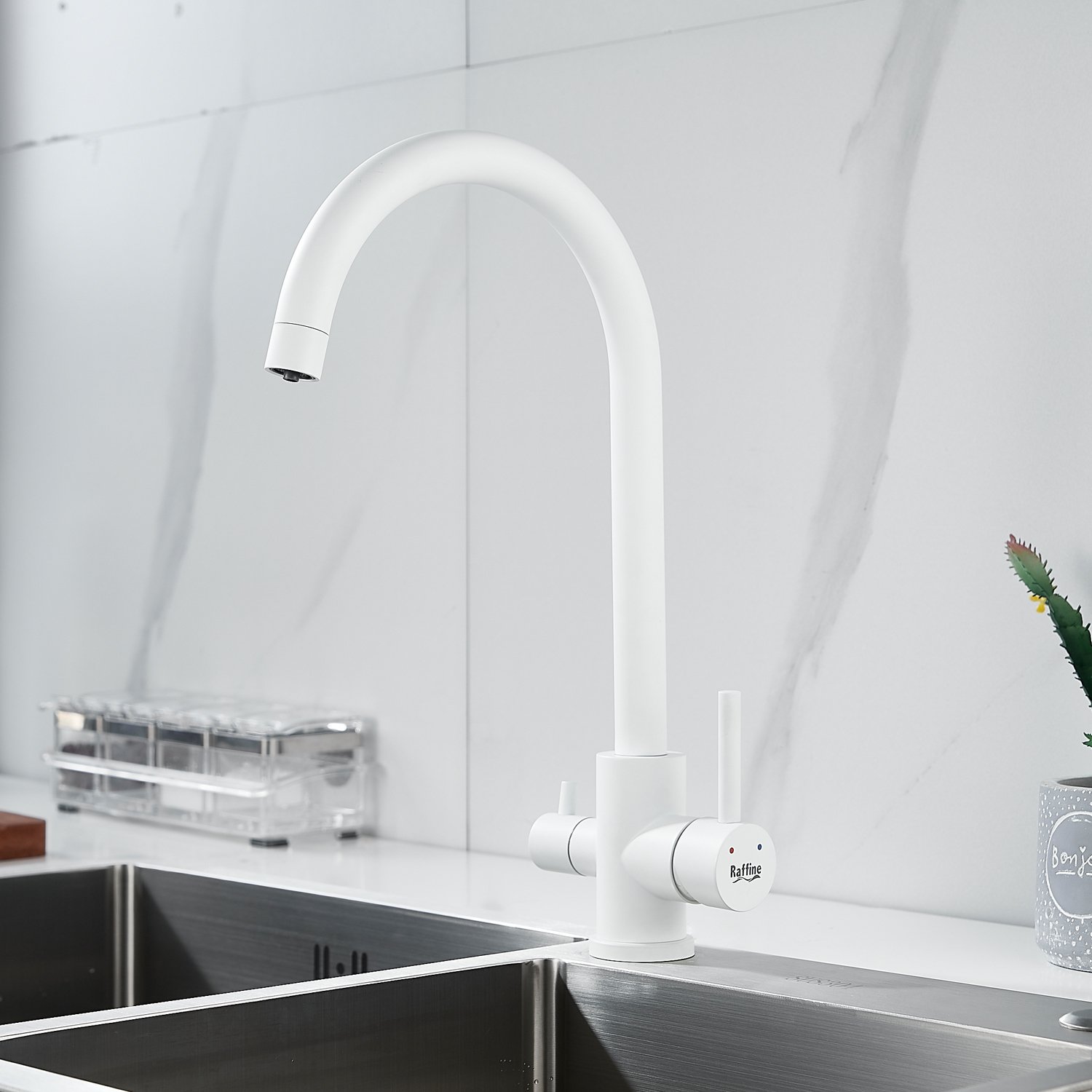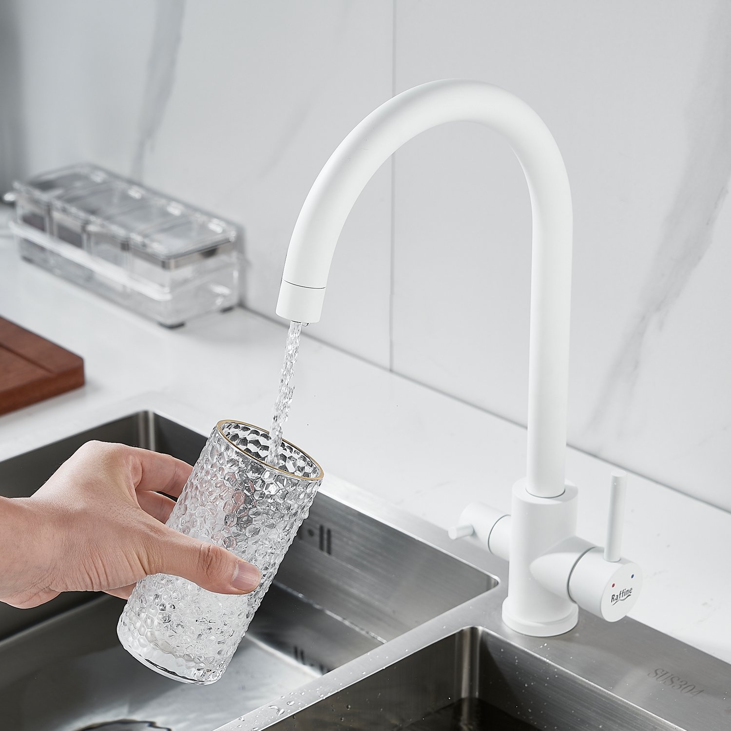 Смеситель для кухни с подключением фильтра воды Raffine F108C, белый
