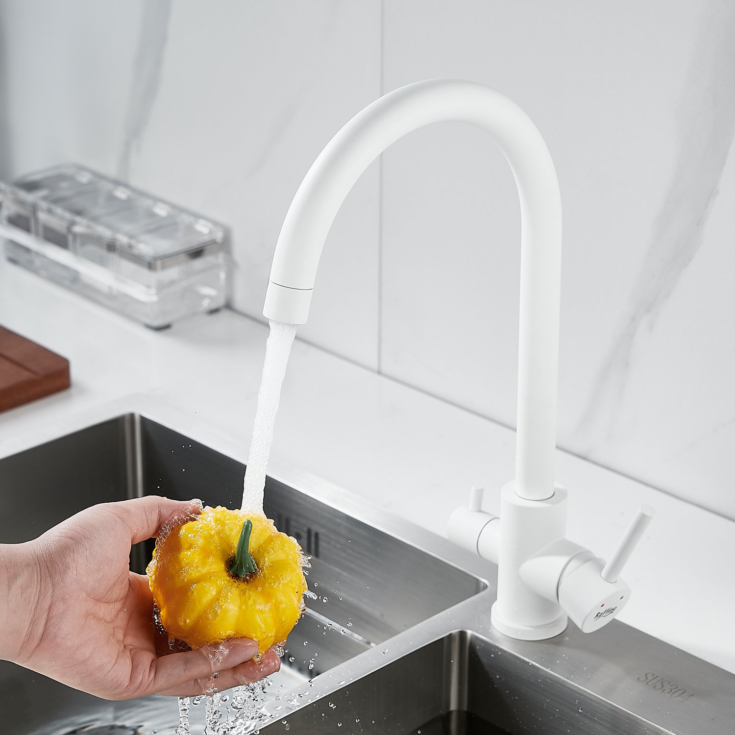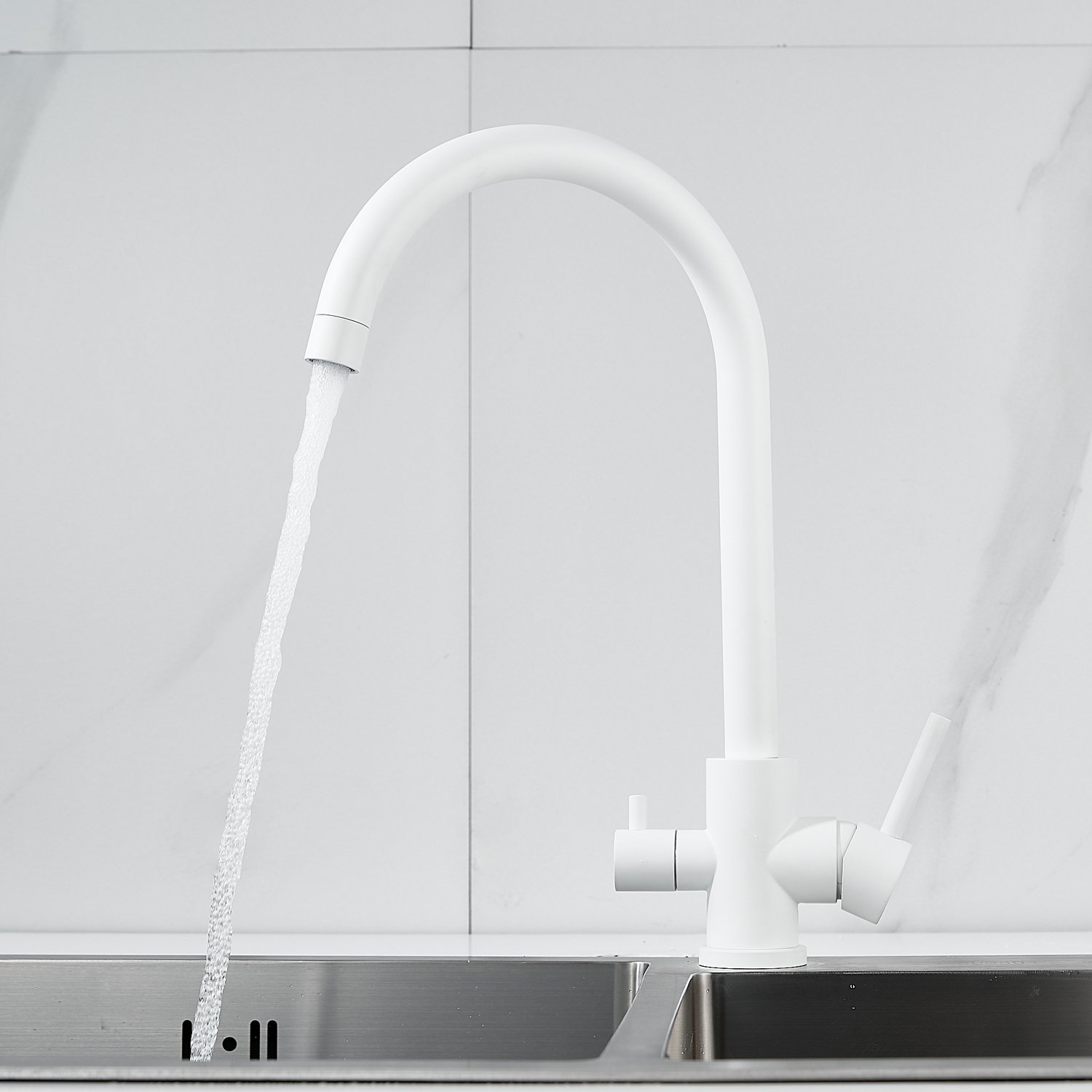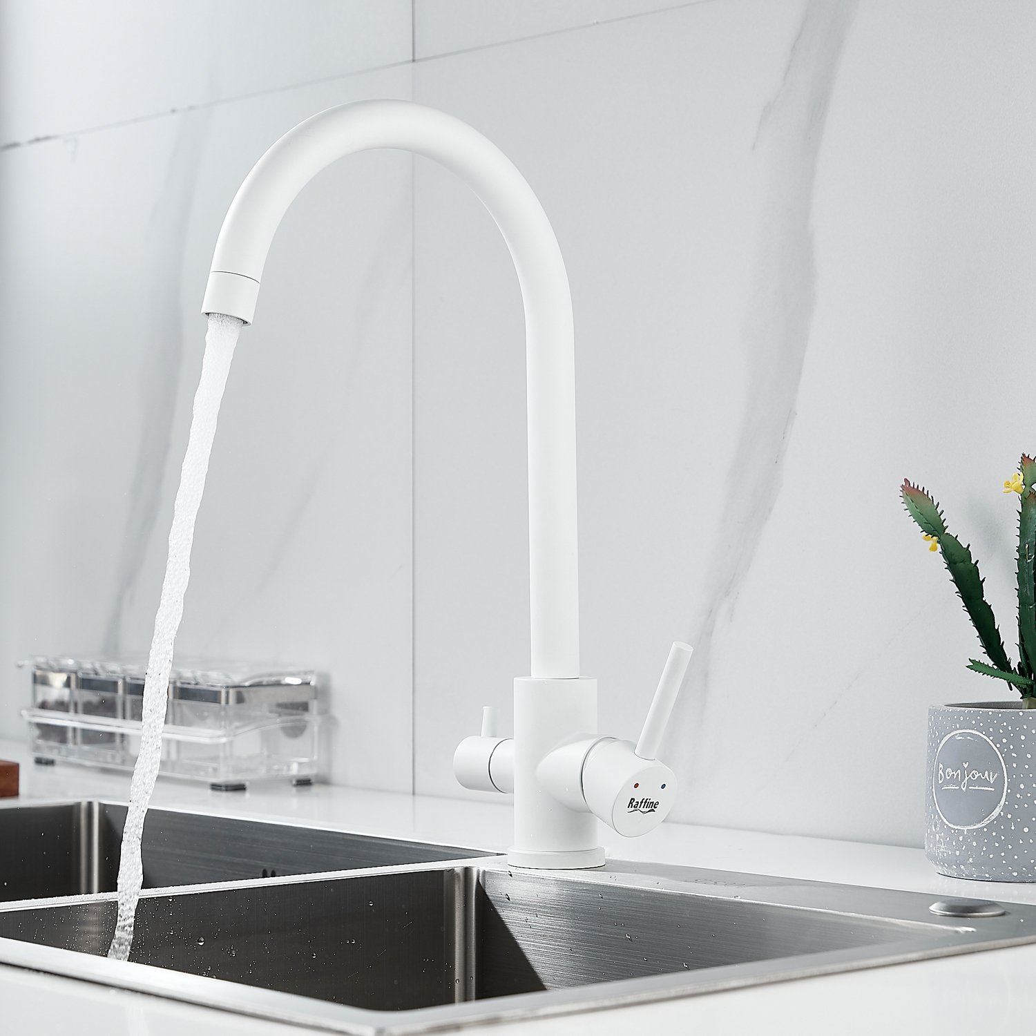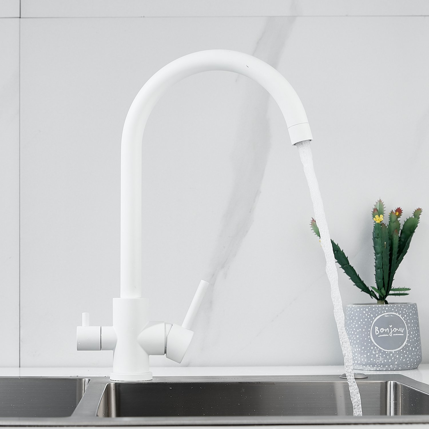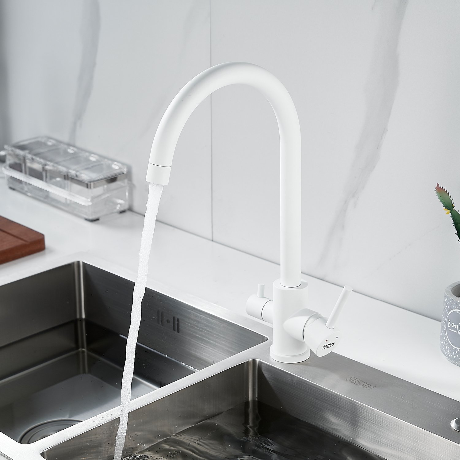 Смеситель для кухни с подключением фильтра воды Raffine F108C, белый
