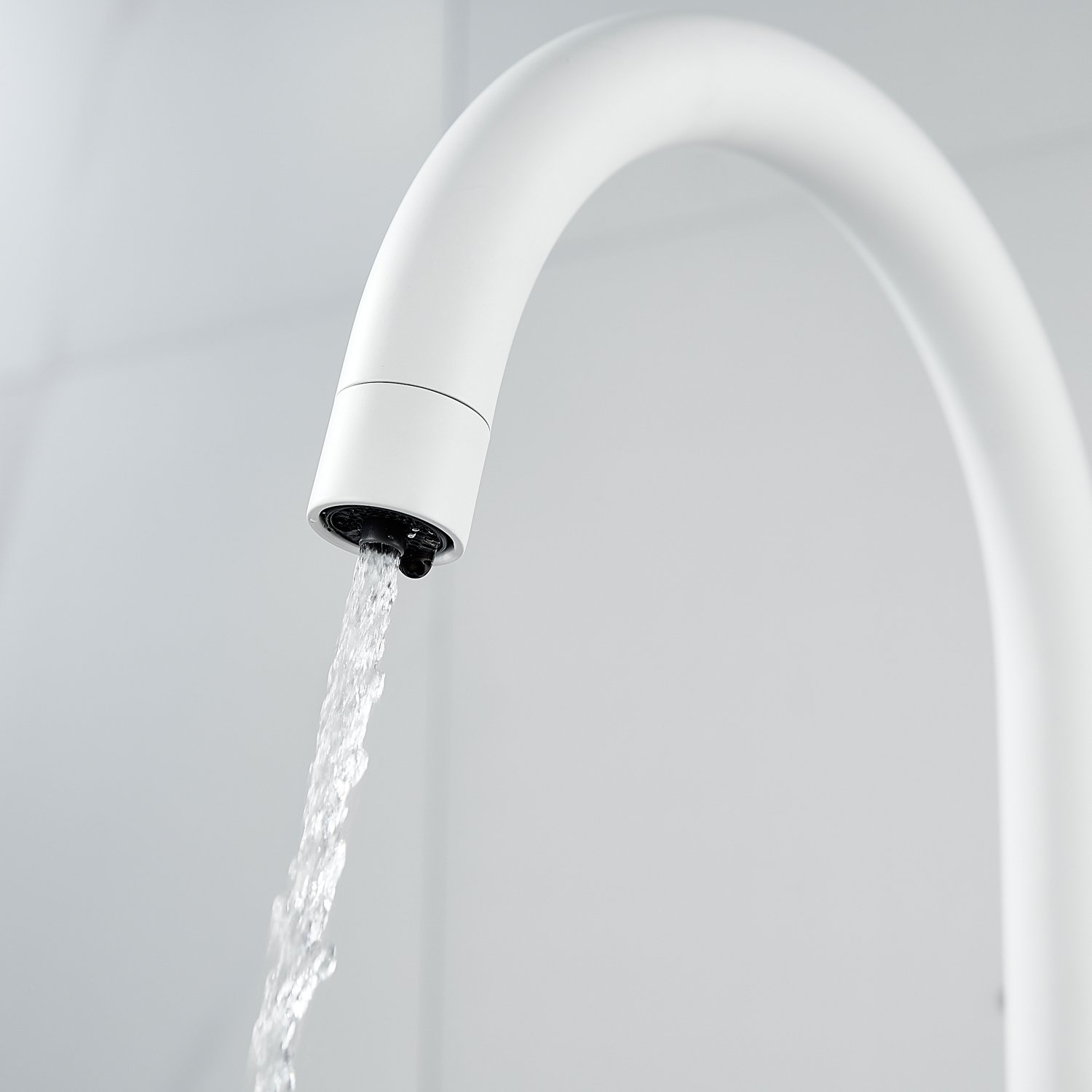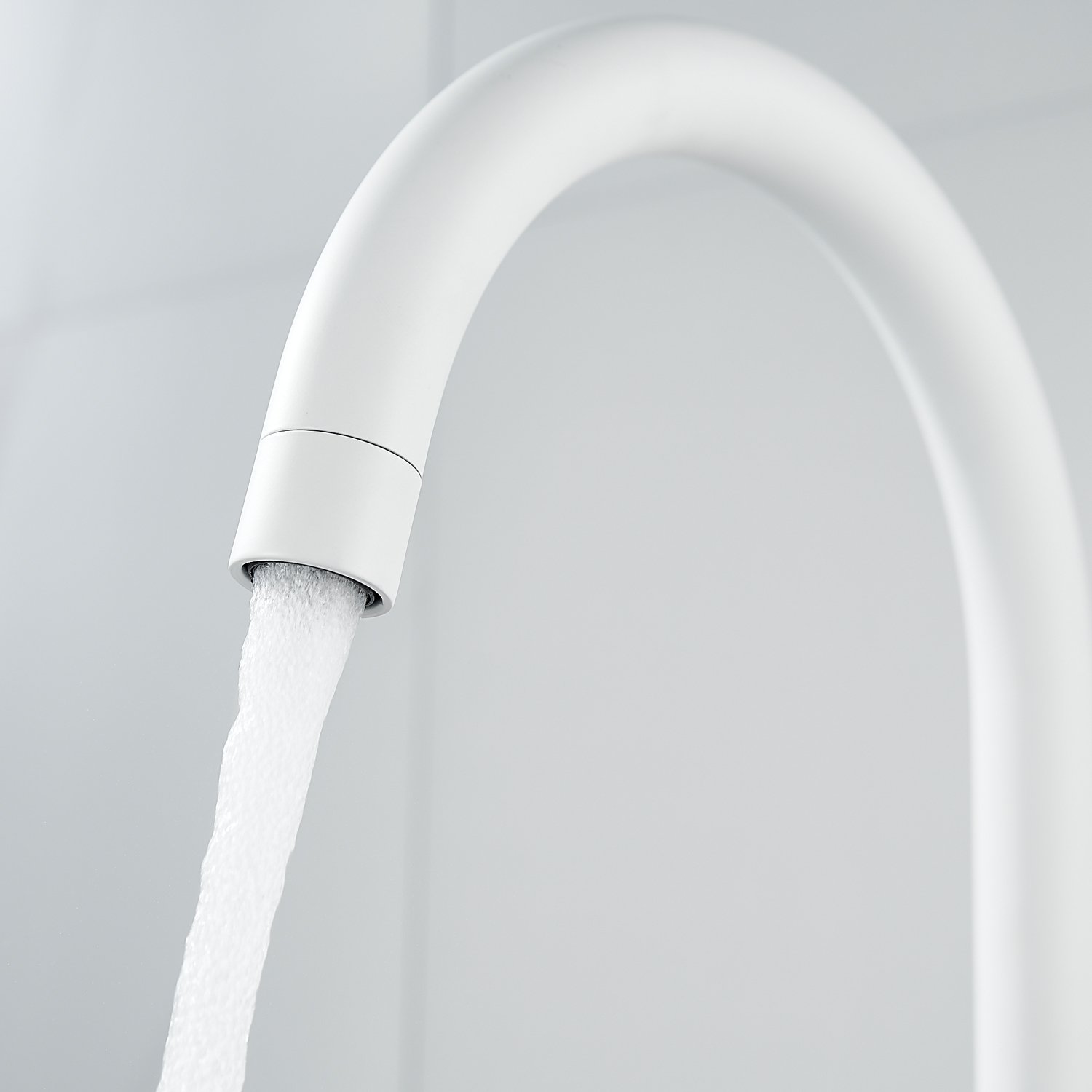 Смеситель оснащён поворотным изливом с аэратором, который обеспечивает экономию воды и делает поток более мягким и равномерным. Также имеется возможность подключения фильтра для питьевой воды, что позволит вам получать чистую воду прямо из крана.