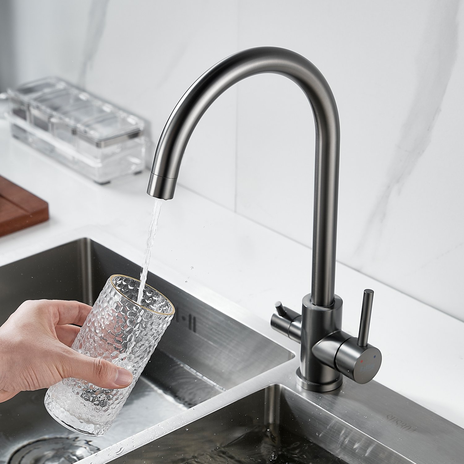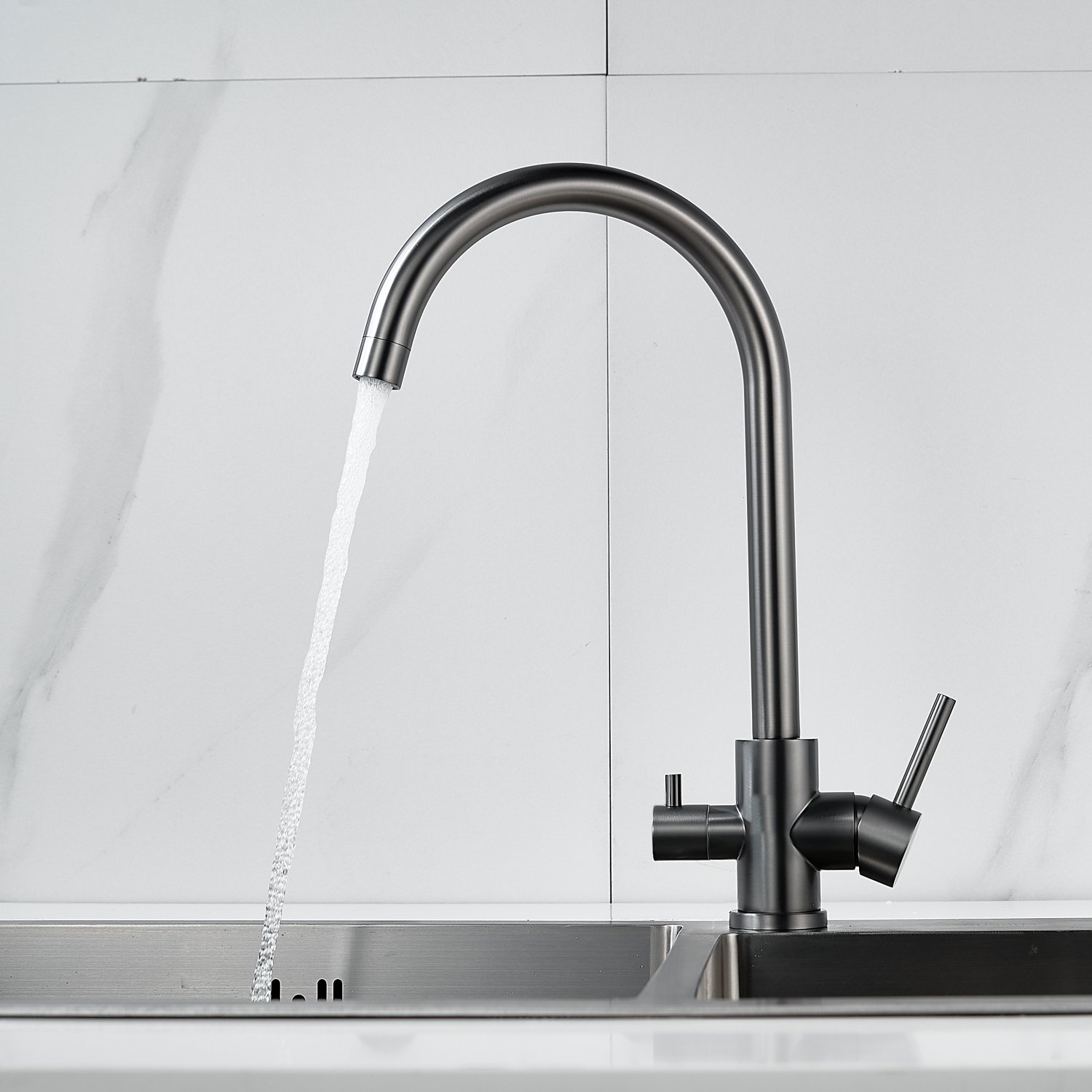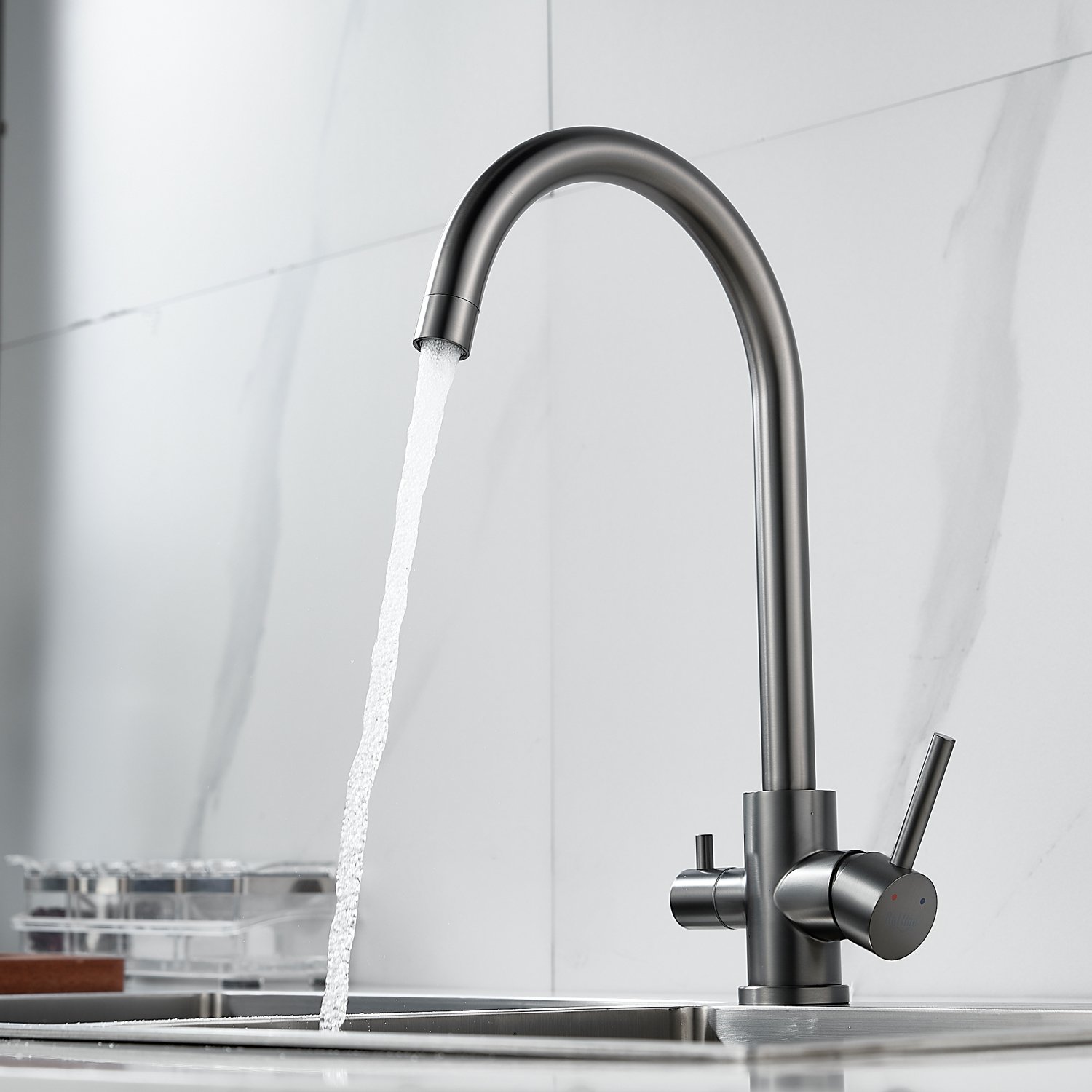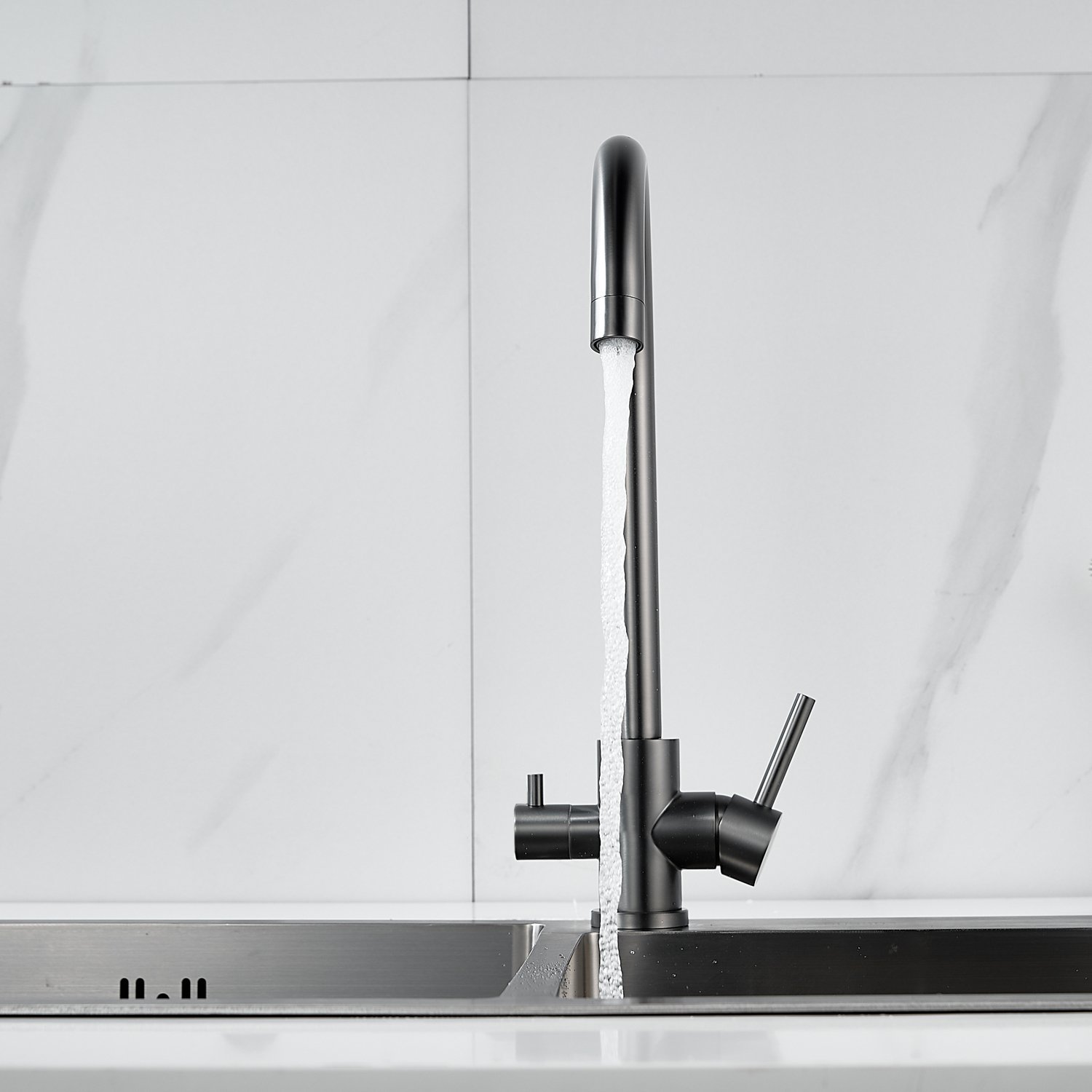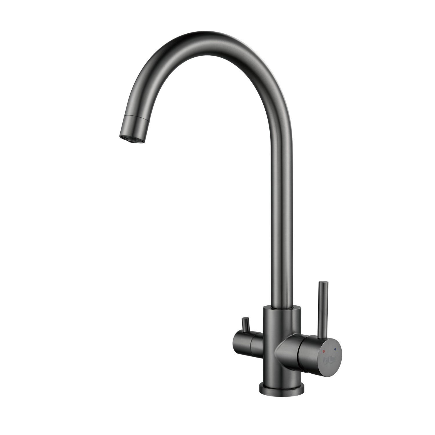 Смеситель для кухни с подключением фильтра воды Raffine F108T, оружейная сталь