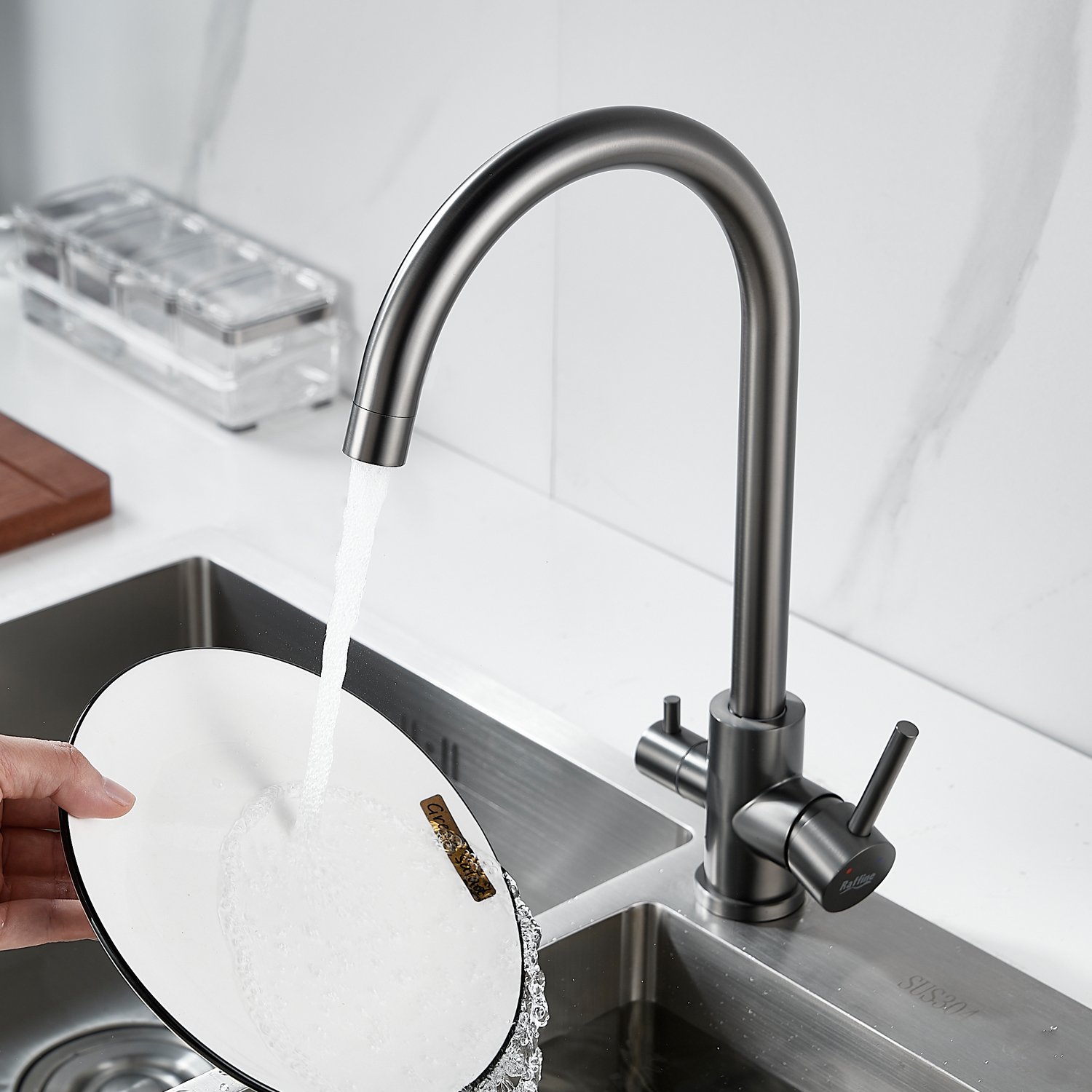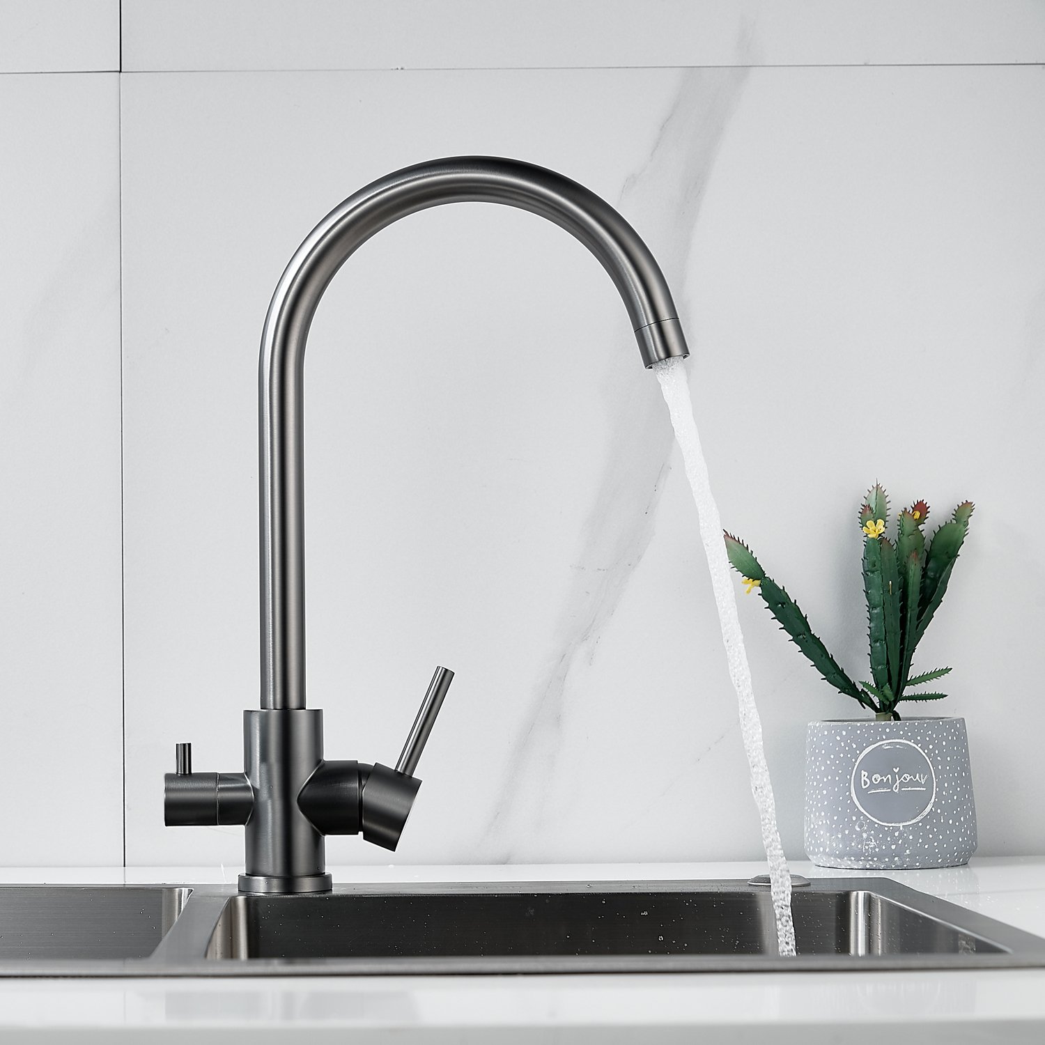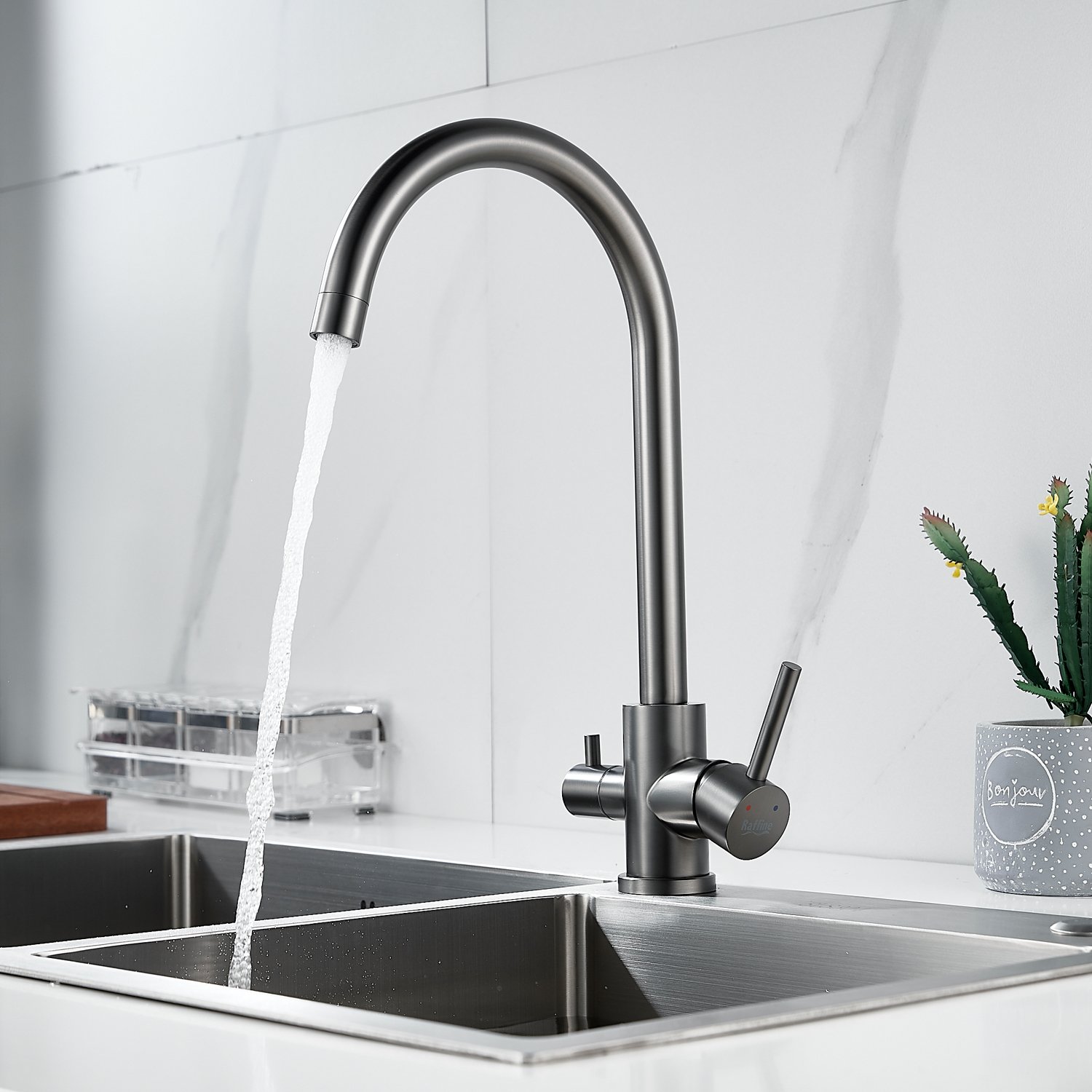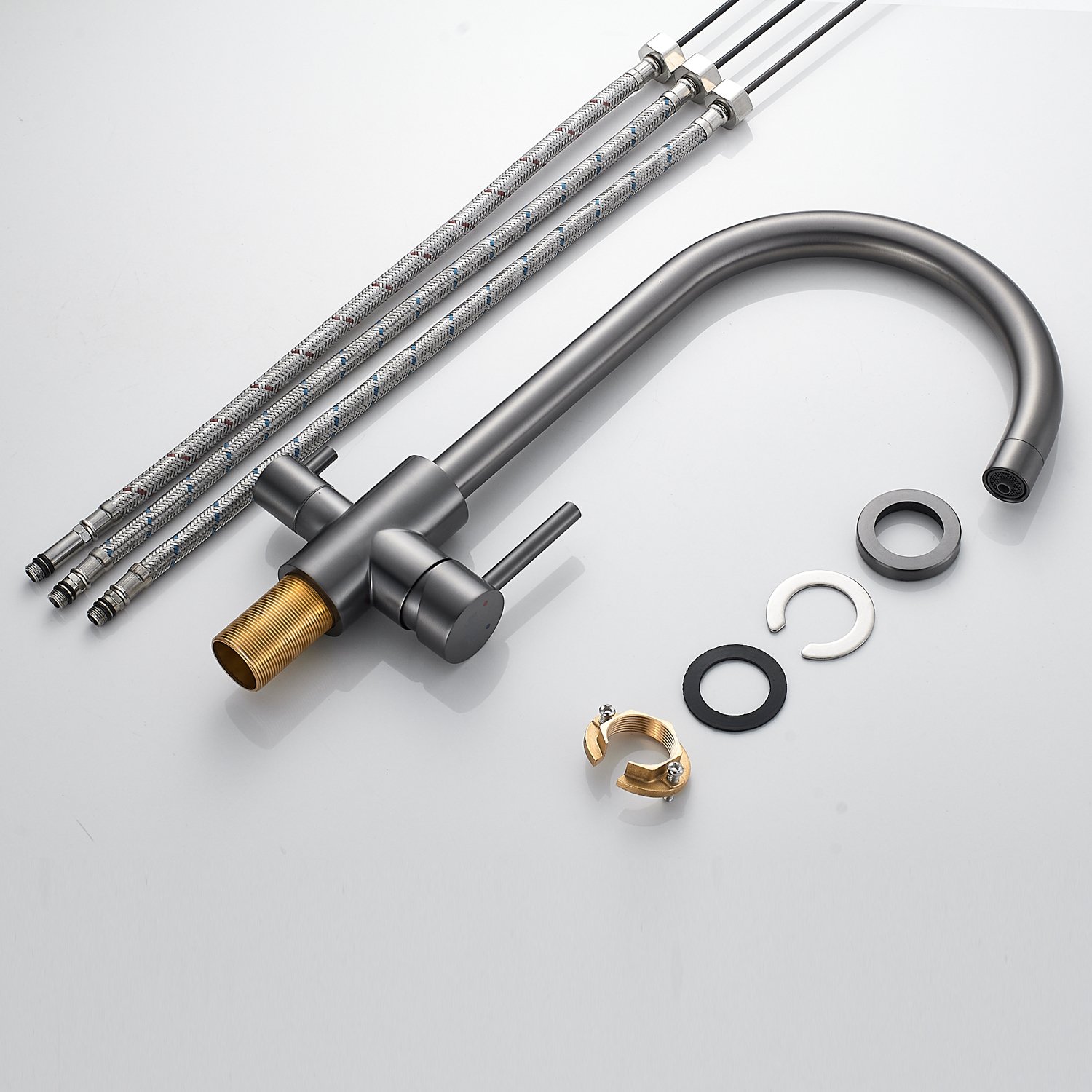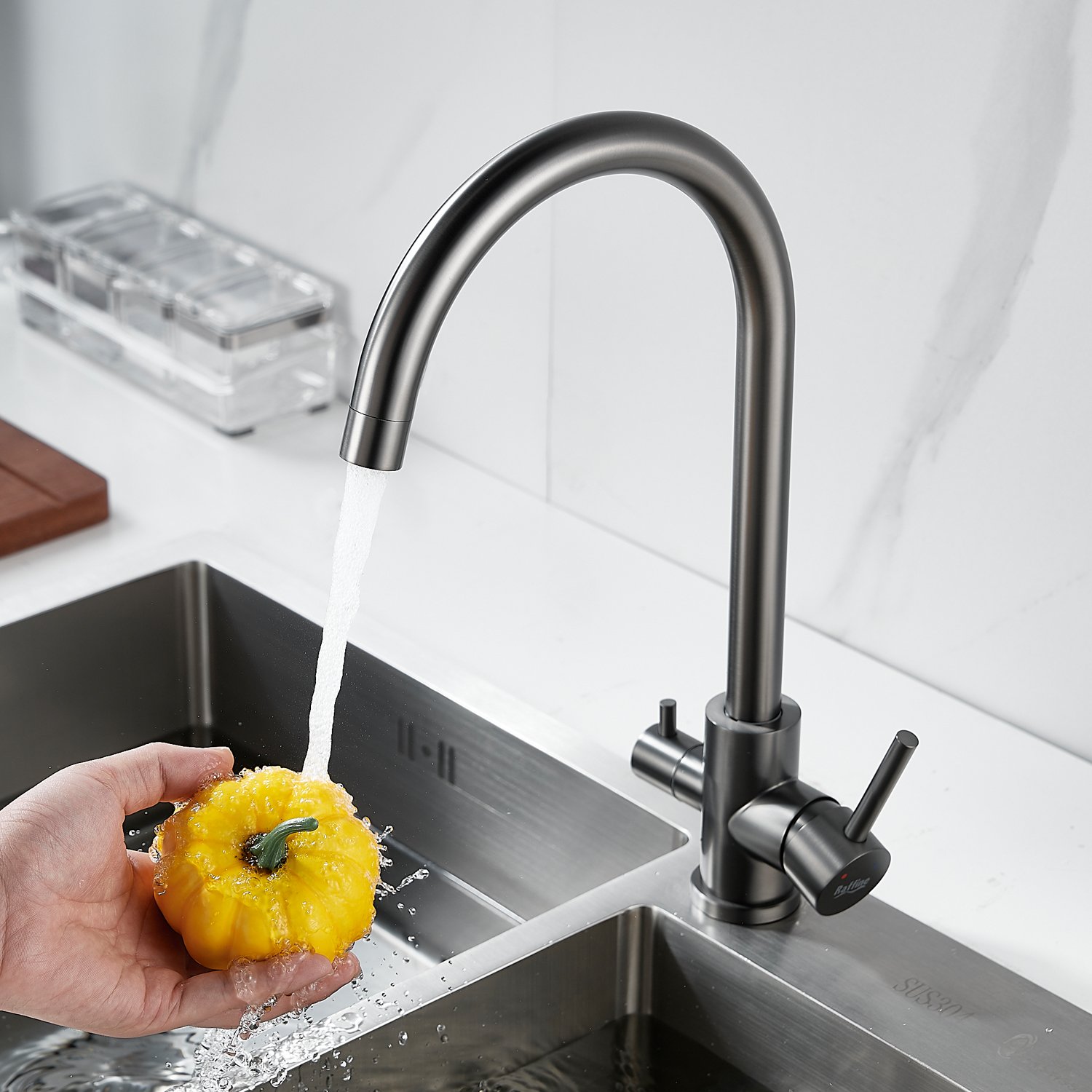 Смеситель для кухни с подключением фильтра воды Raffine F108T, оружейная сталь