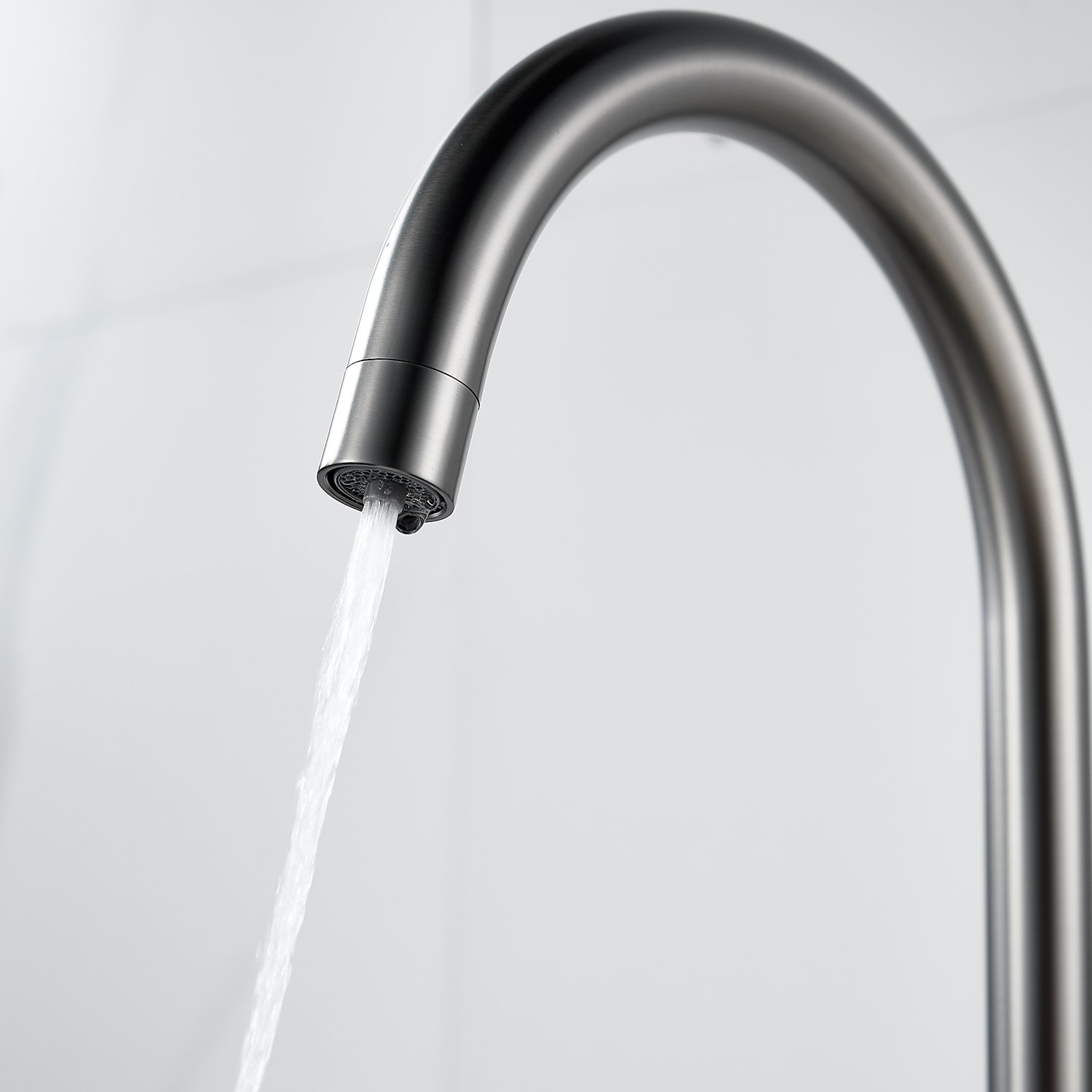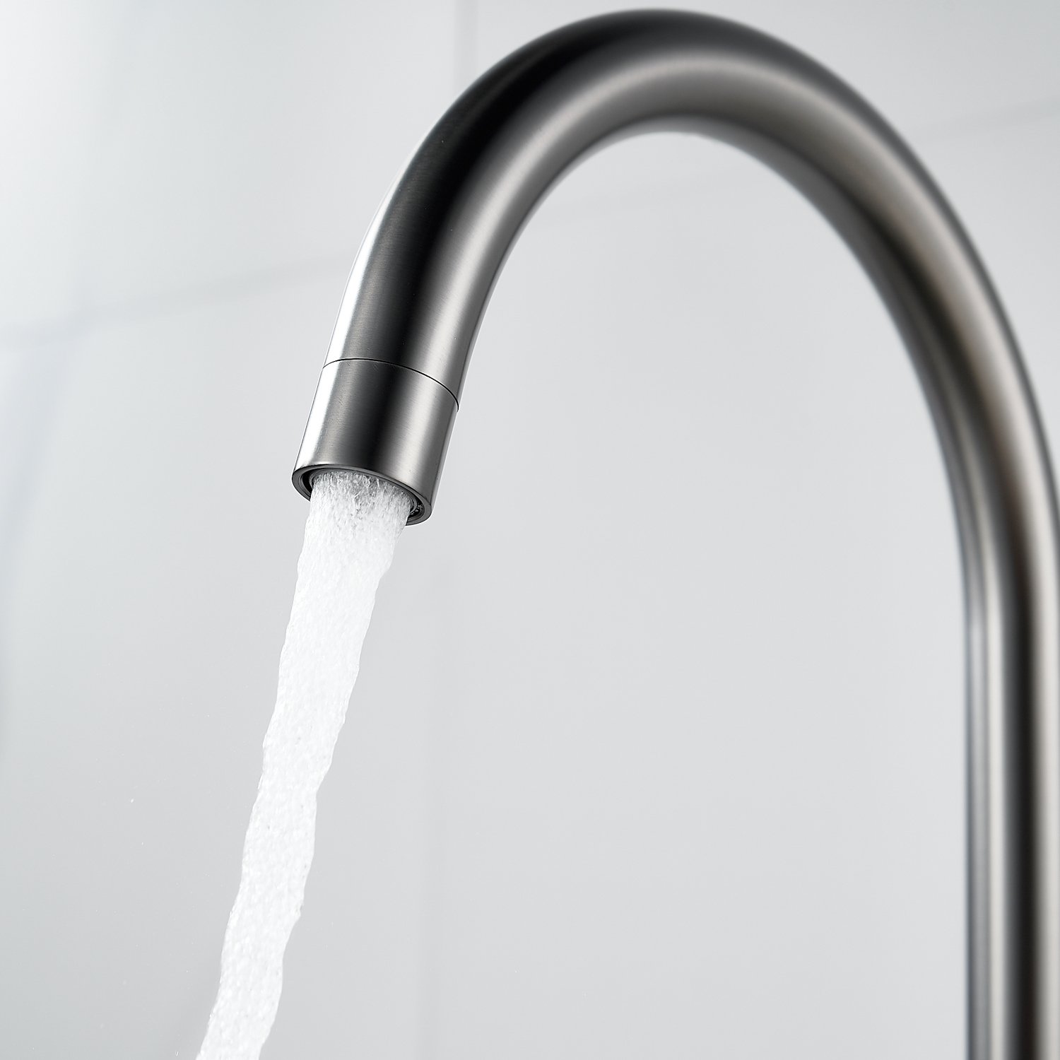 Смеситель оснащён поворотным изливом с аэратором, который обеспечивает экономию воды и делает поток более мягким и равномерным. Также имеется возможность подключения фильтра для питьевой воды, что позволит вам получать чистую воду прямо из крана.