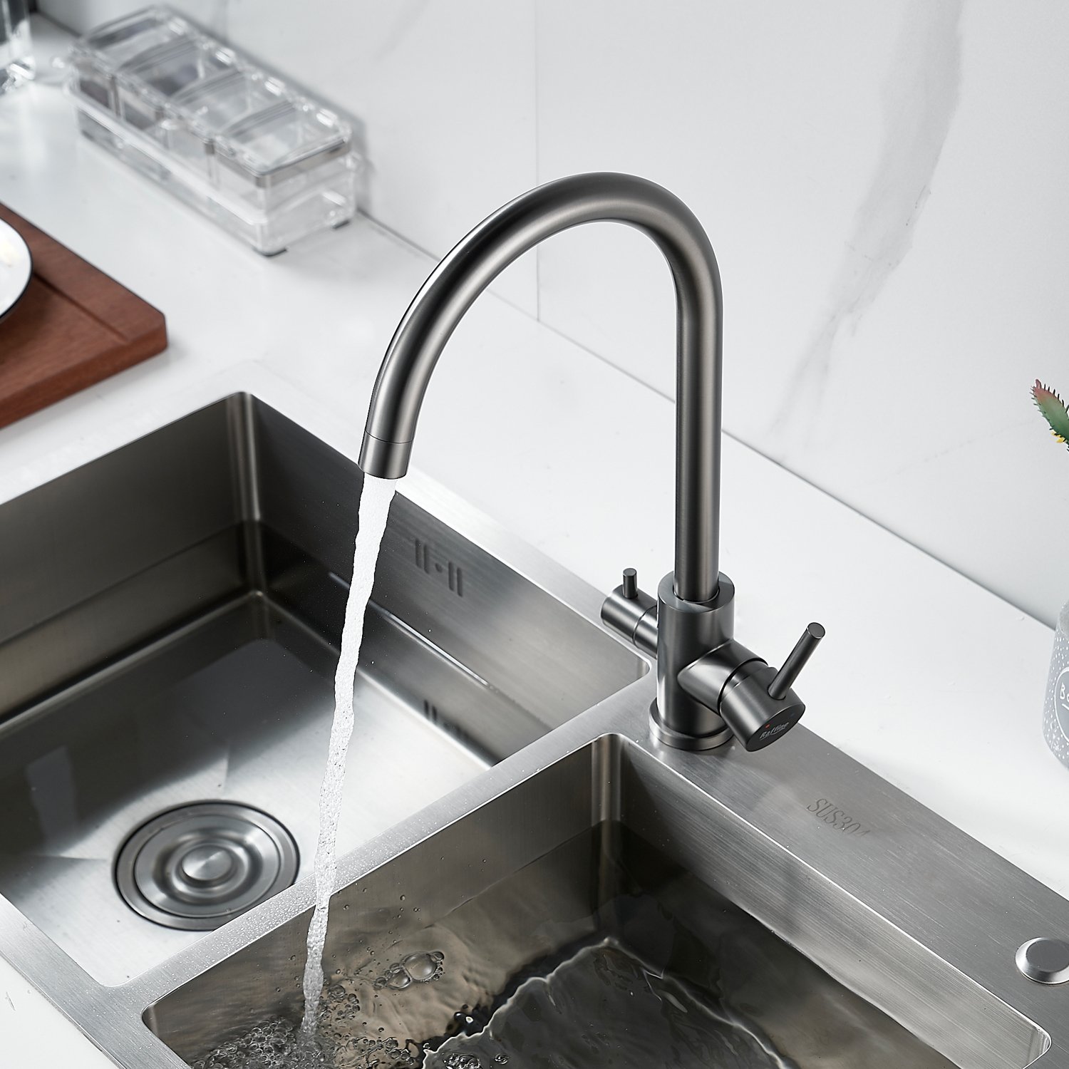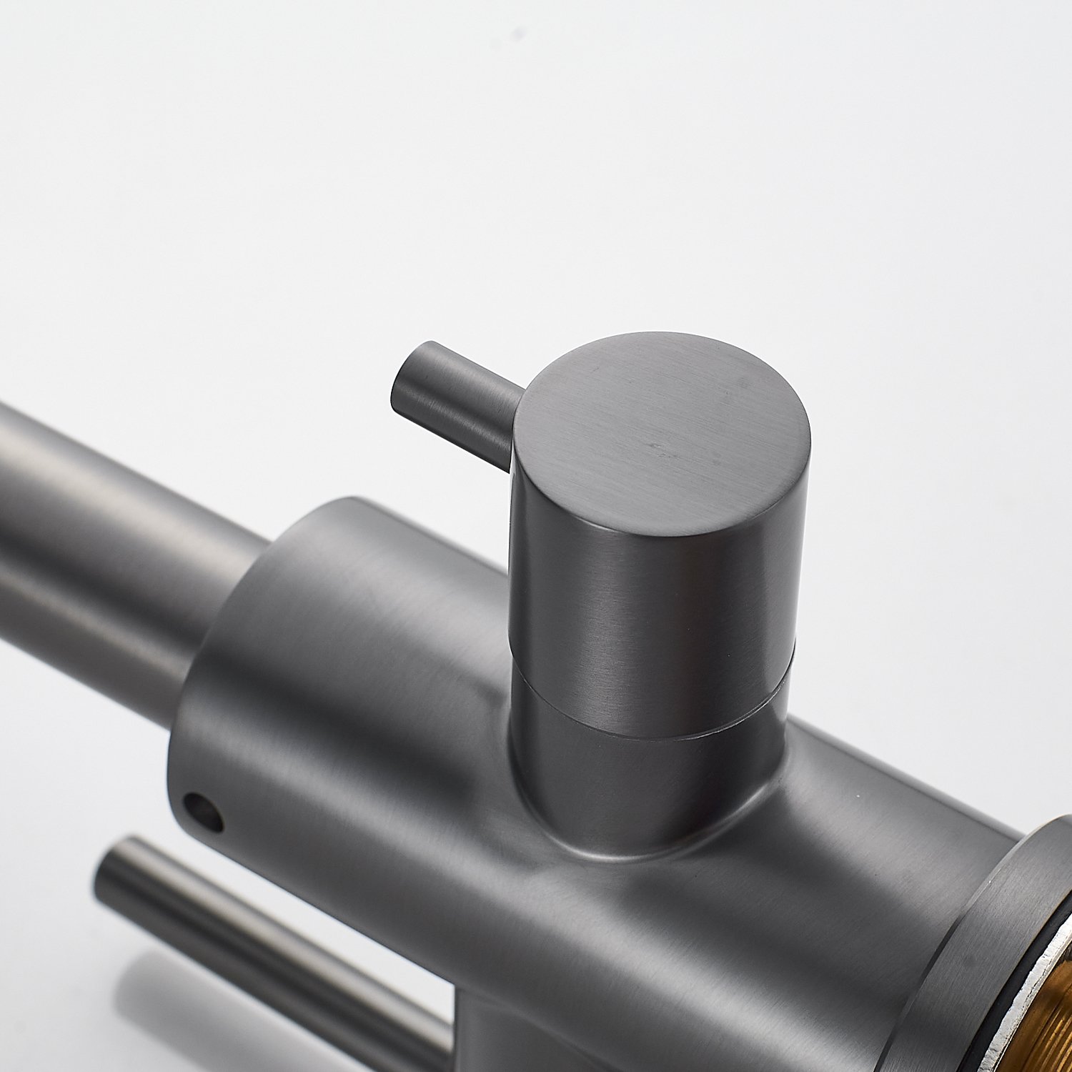 Смеситель для кухни Raffine F108T в цвете "оружейная сталь" — стильное и функциональное решение для вашей кухни. Изготовлен из высококачественной нержавеющей стали, что гарантирует его прочность и долговечность.