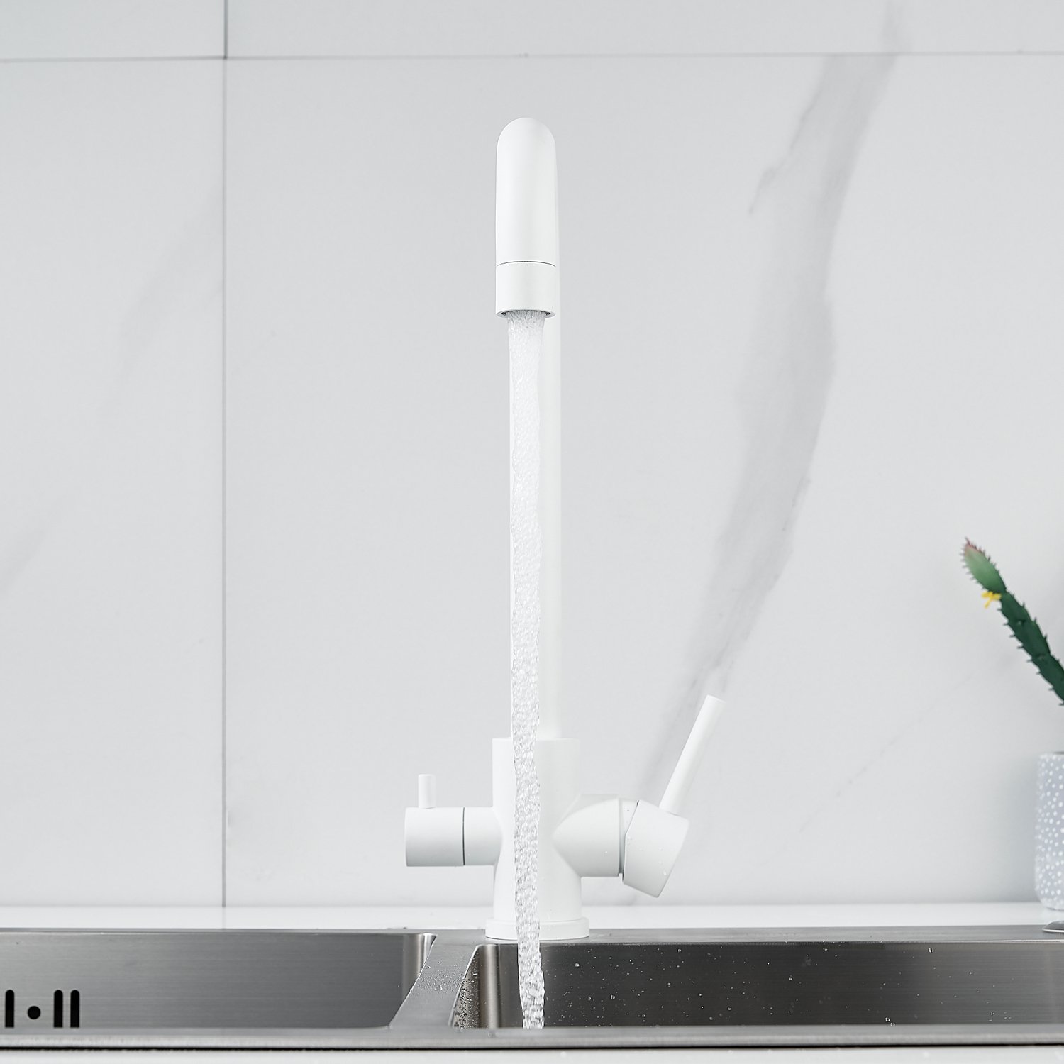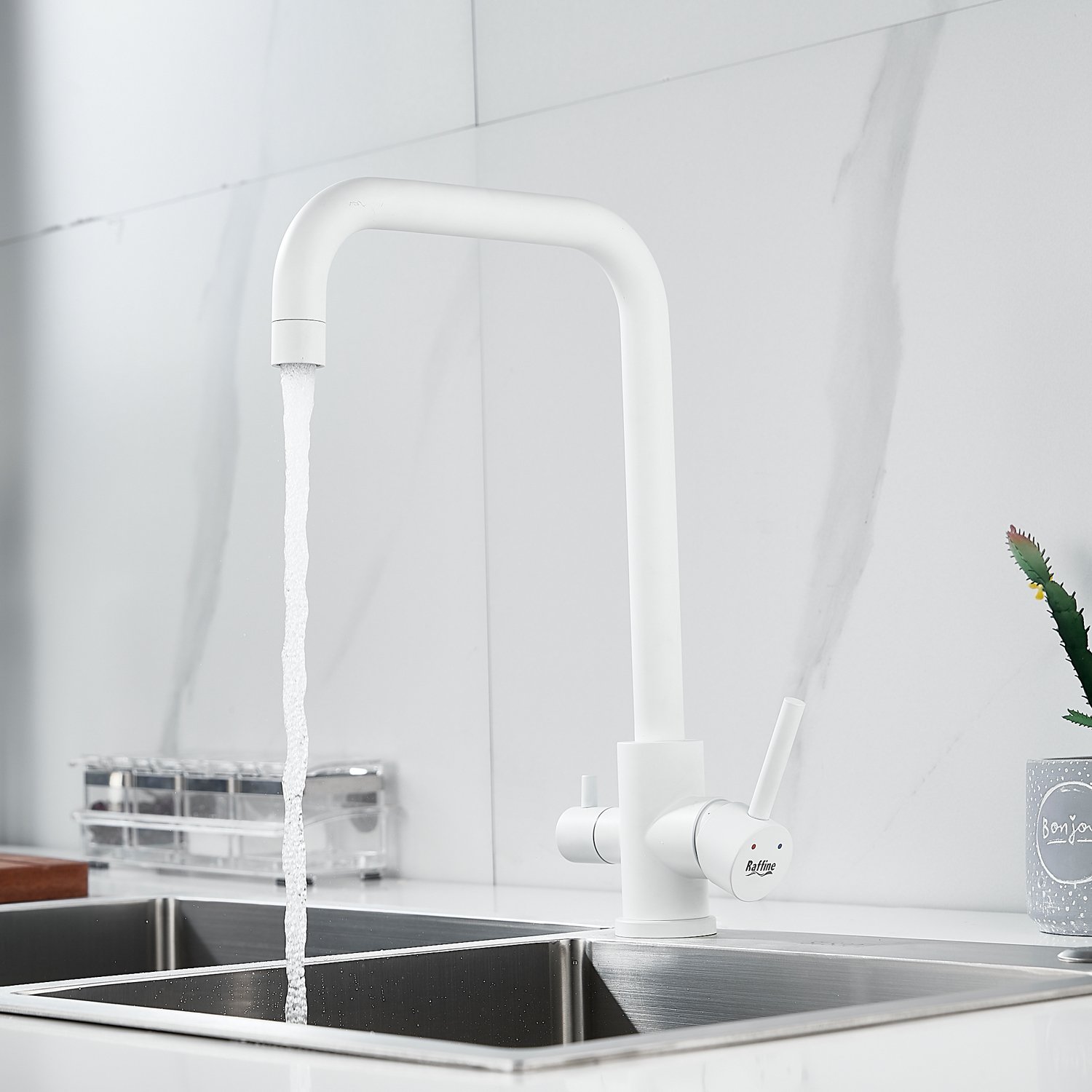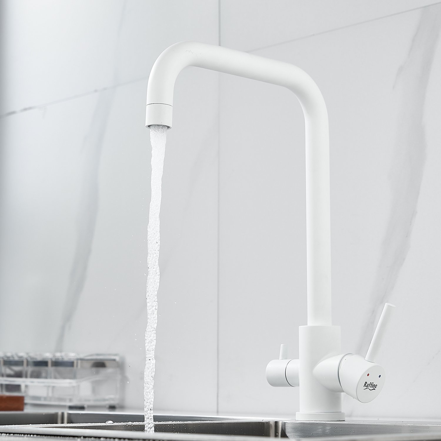 Смеситель для кухни с подключением фильтра воды Raffine F118C, белый