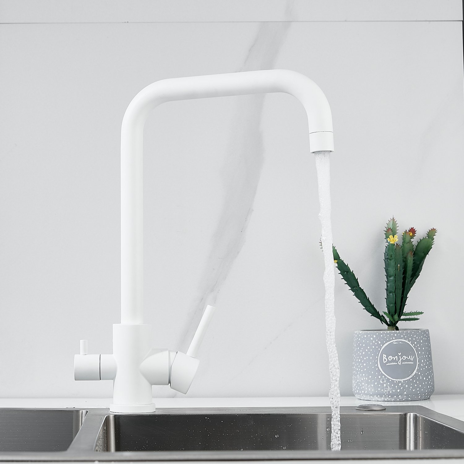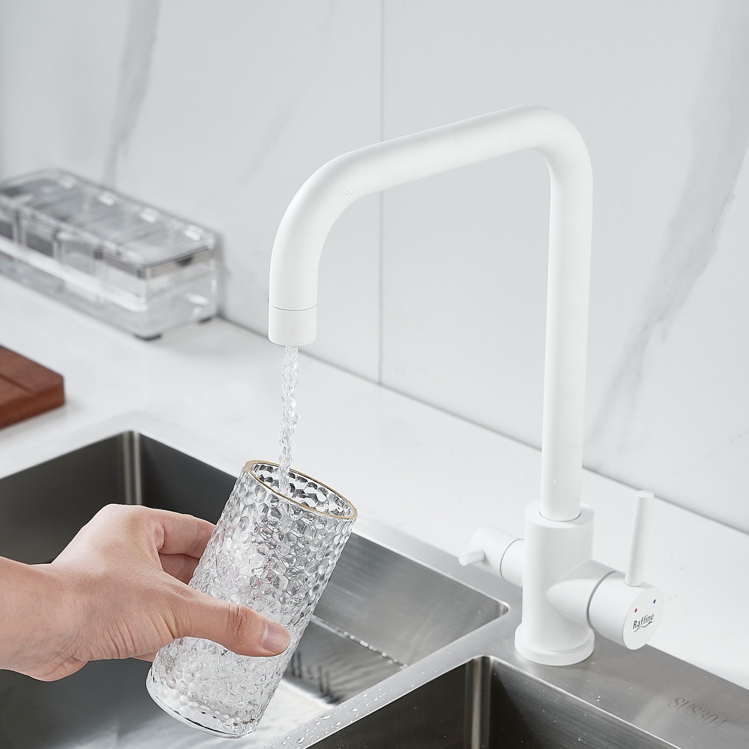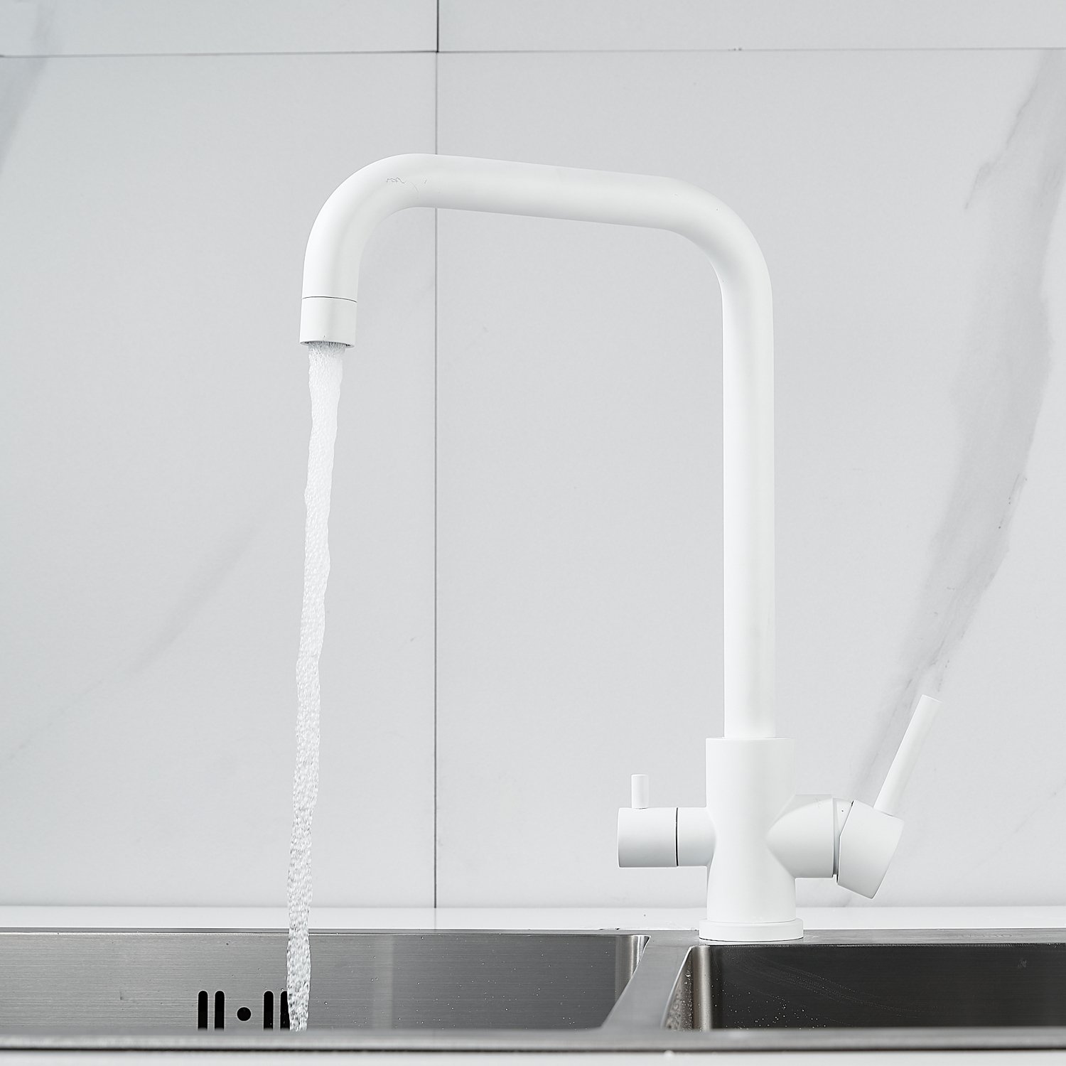 Смеситель для кухни с подключением фильтра воды Raffine F118C, белый