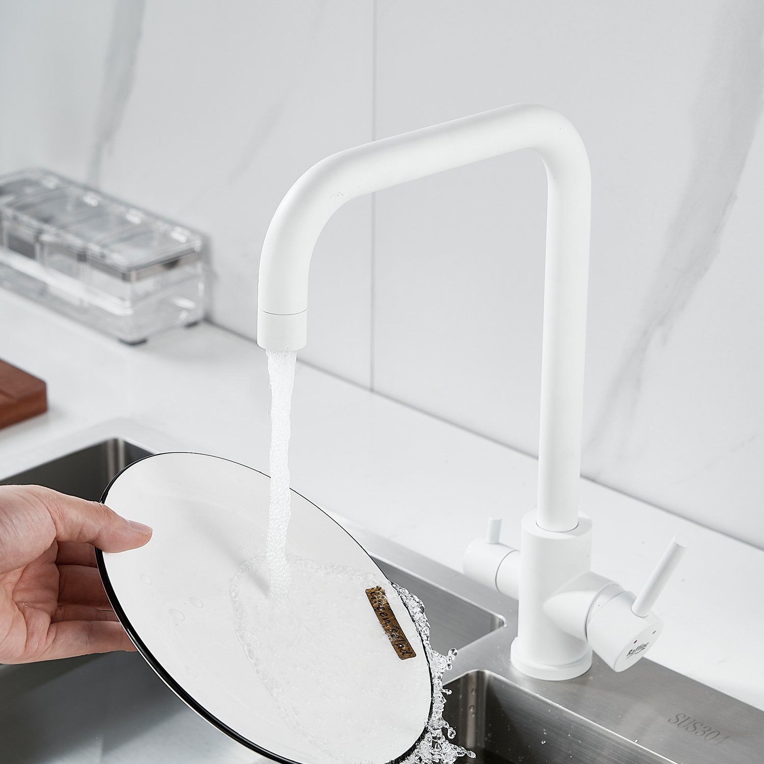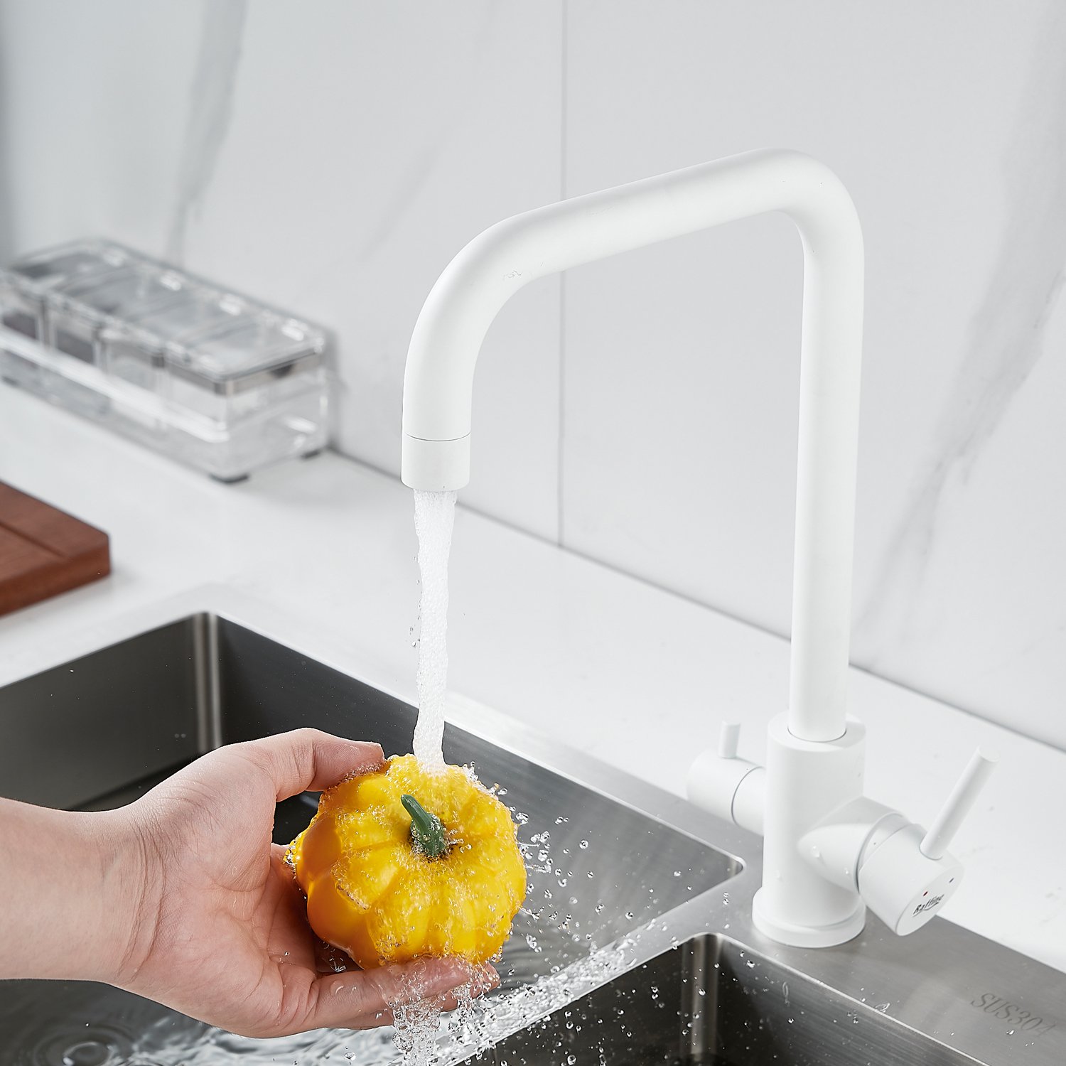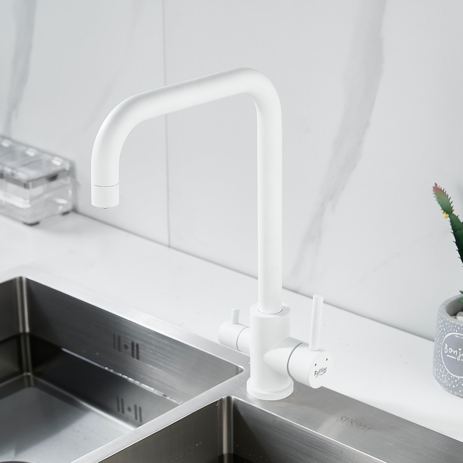 Смеситель для кухни Raffine F118C в белом матовом цвете — стильное и функциональное решение для вашей кухни. Изготовлен из высококачественной нержавеющей стали, что гарантирует его прочность и долговечность.