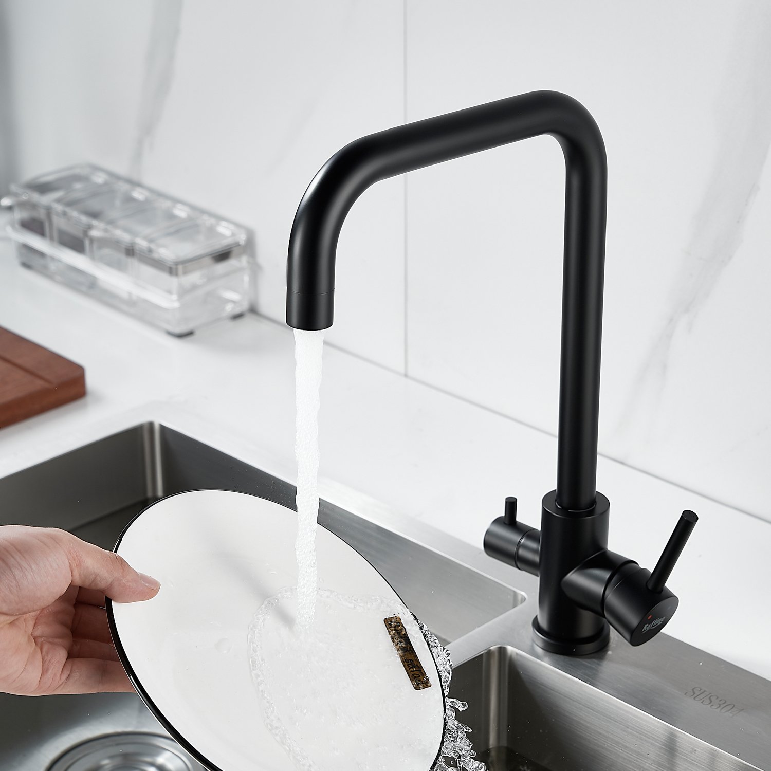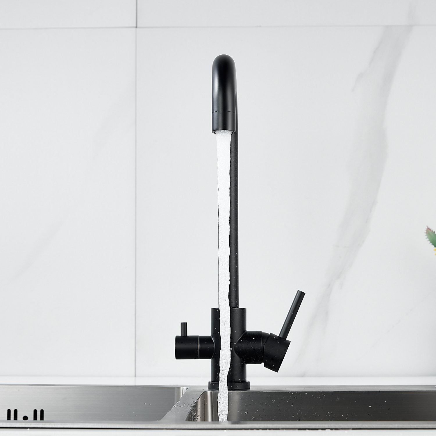 Смеситель для кухни с подключением фильтра воды Raffine F118H, черный