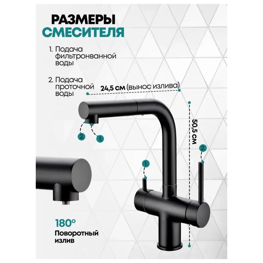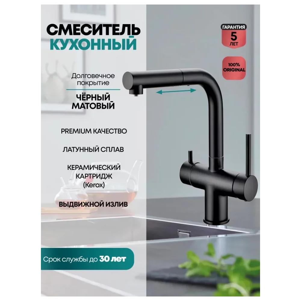 Смеситель для кухни под фильтр с выдвижным изливом Grocenberg GB4097 Чёрный матовый