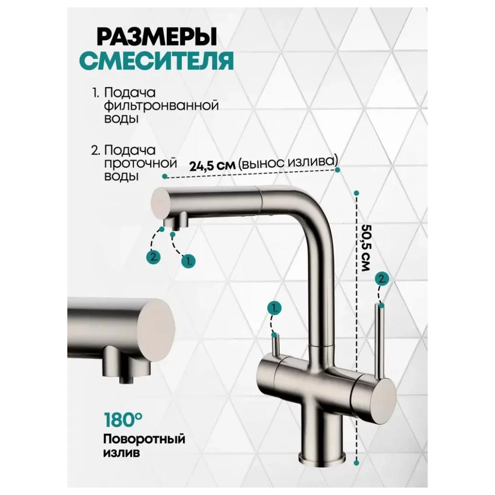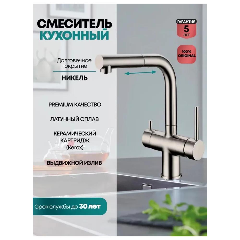 Смеситель для кухни под фильтр с выдвижным изливом Grocenberg GB4097 Никель