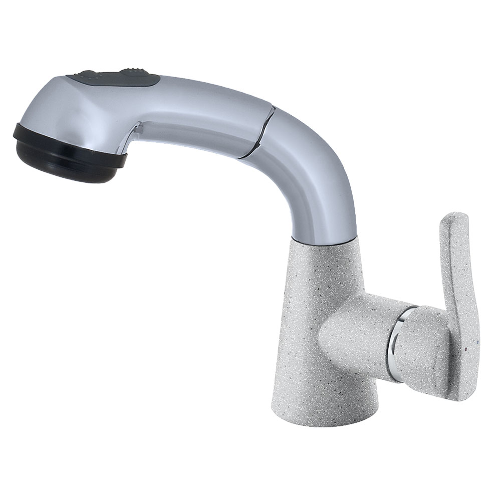 Смеситель для кухни с выдвижным изливом и режимом душ GranFest 3773, серый