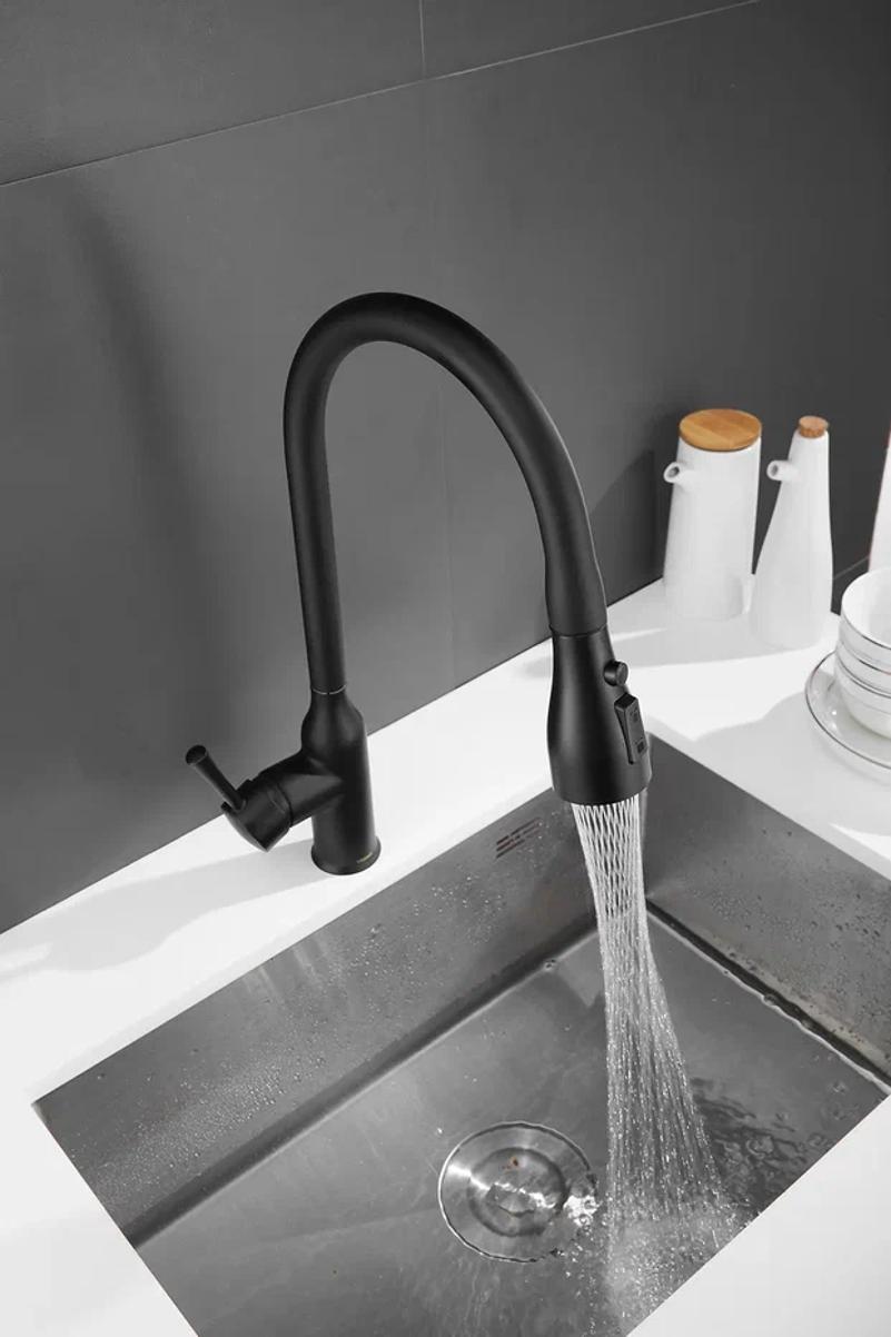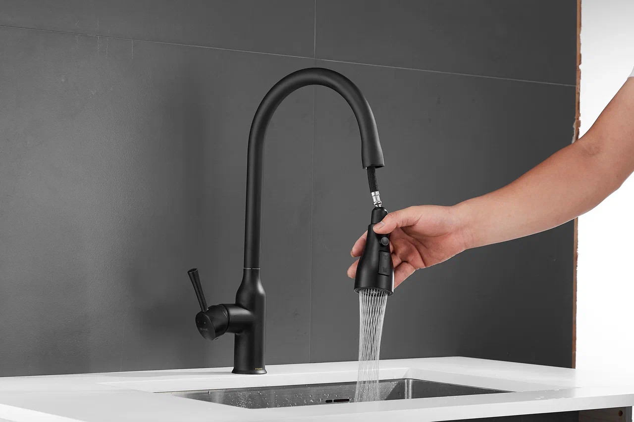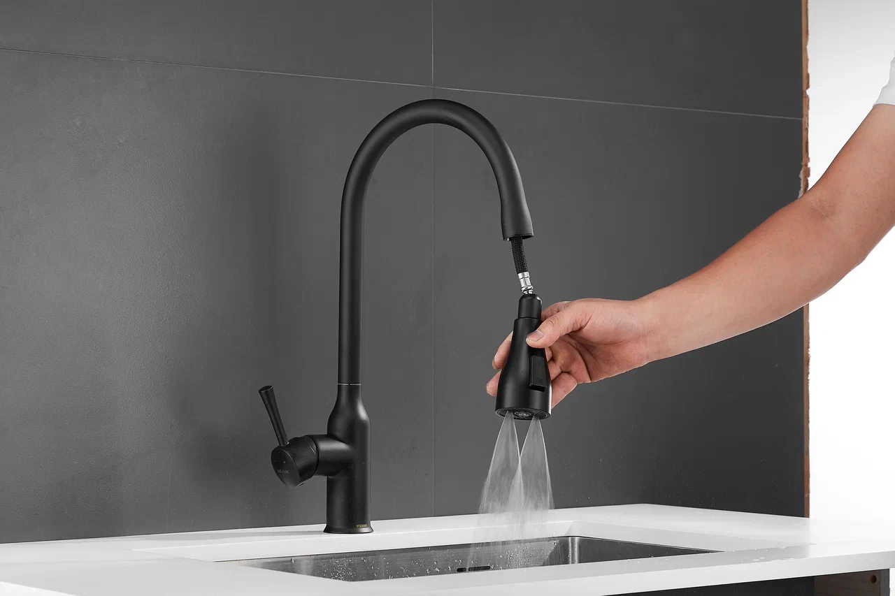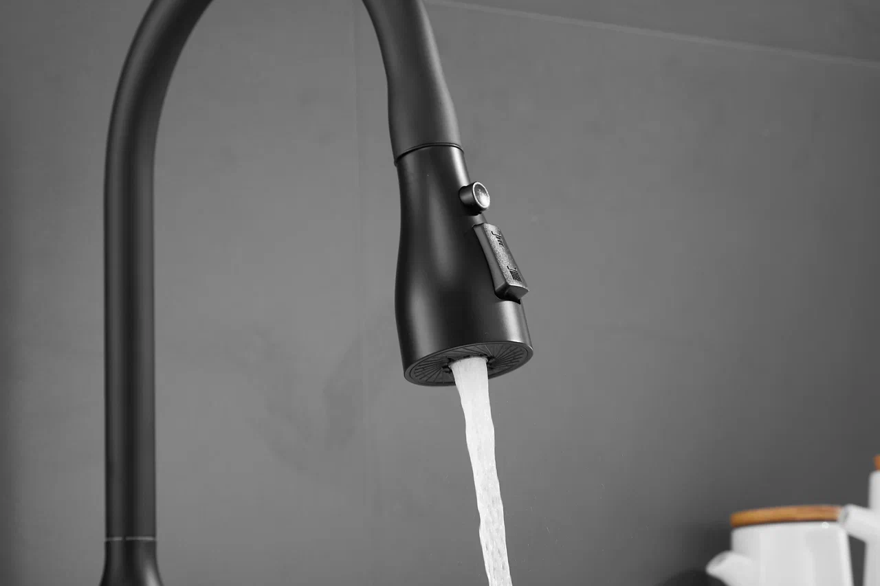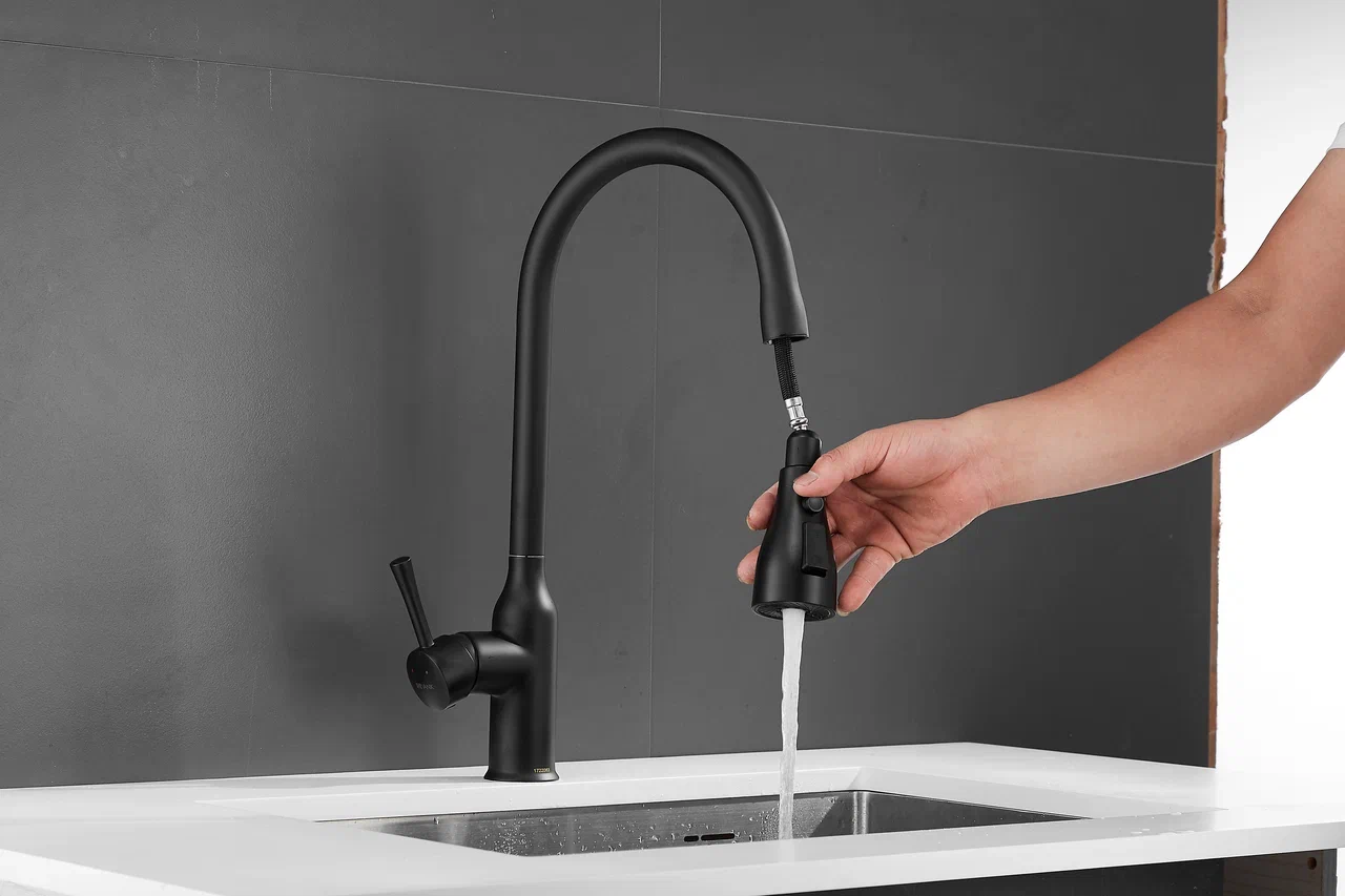 Смеситель для кухни с выдвижным изливом Shevanik S163H, черный