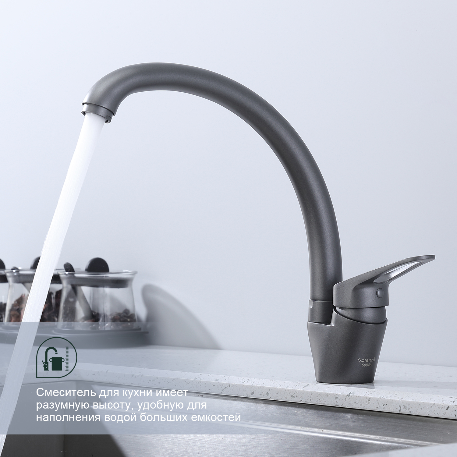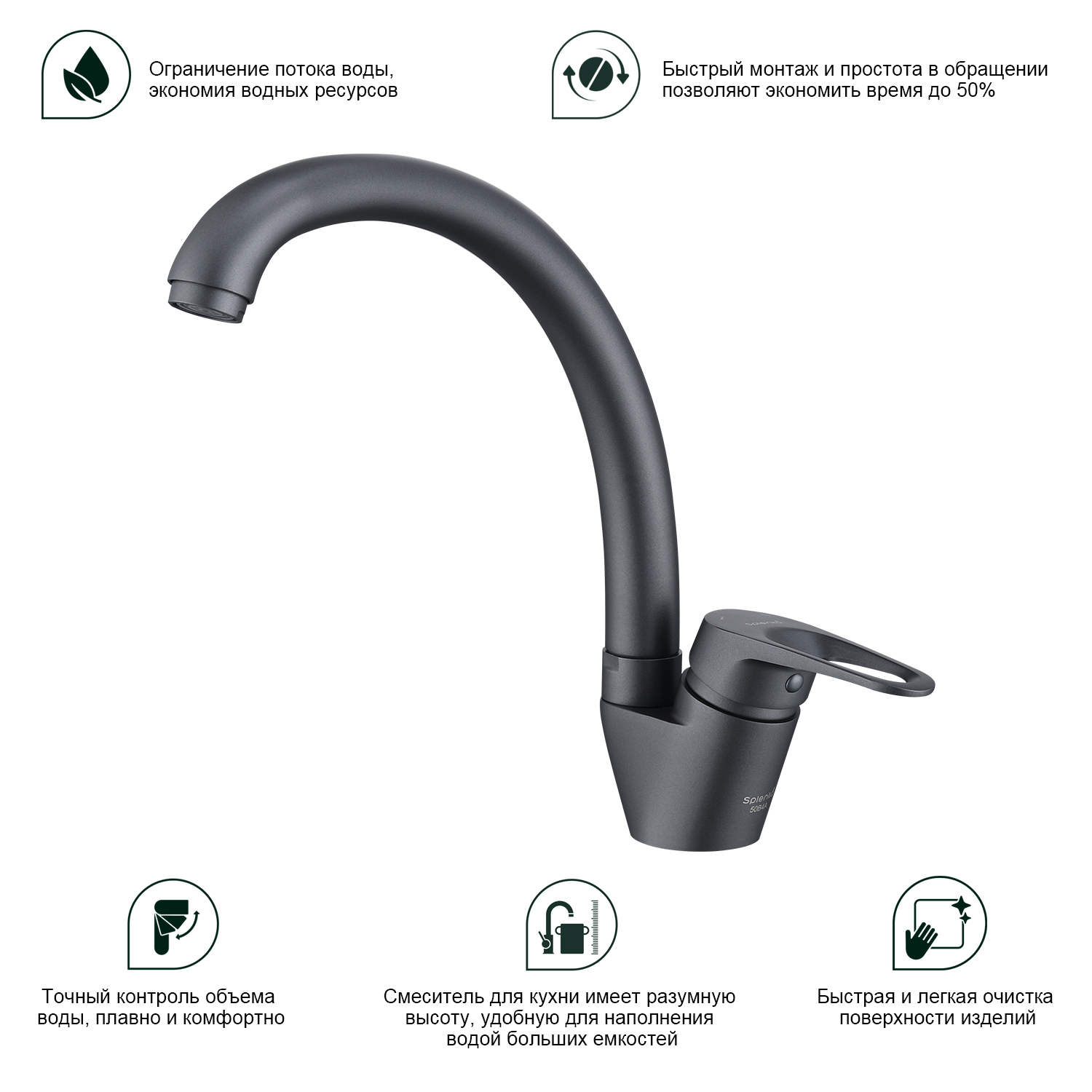 Смеситель для кухни Splenka S202.41.07. Цвет: серый. Кухонные смесители торговой марки SPLENKA широко известны своей надежностью. Строгий контроль качества сопровождает весь цикл производства, включающий материалы и технологии по немецким стандартам: аэратор позволит сэкономить до 30% воды и обеспечит равномерный поток воды. Душевая лейка с двумя функциями, легкое переключение между режимами. Смеситель для кухни имеет разумную высоту, удобную для наполнения водой больших емкостей. Поворотный излив позволяет с большим удобством пользоваться им на кухне. Встроенный аэратор эффективно фильтрует примеси и уменьшает шум от импульсов воды. Гладкая внутренняя стенка обеспечивает мягкий поток воды. Высококлассная технология делает поверхность яркой и блестящей. Подходит к кухонным мойкам практически любых размеров и форм. Быстрый монтаж и простота в обращении позволяют экономить время до 50%. Гарантия на сантехнику от производителя – 5 лет на смеситель и 2 года на покрытие. Комплект включает инструкцию по установке и гарантийный талон.