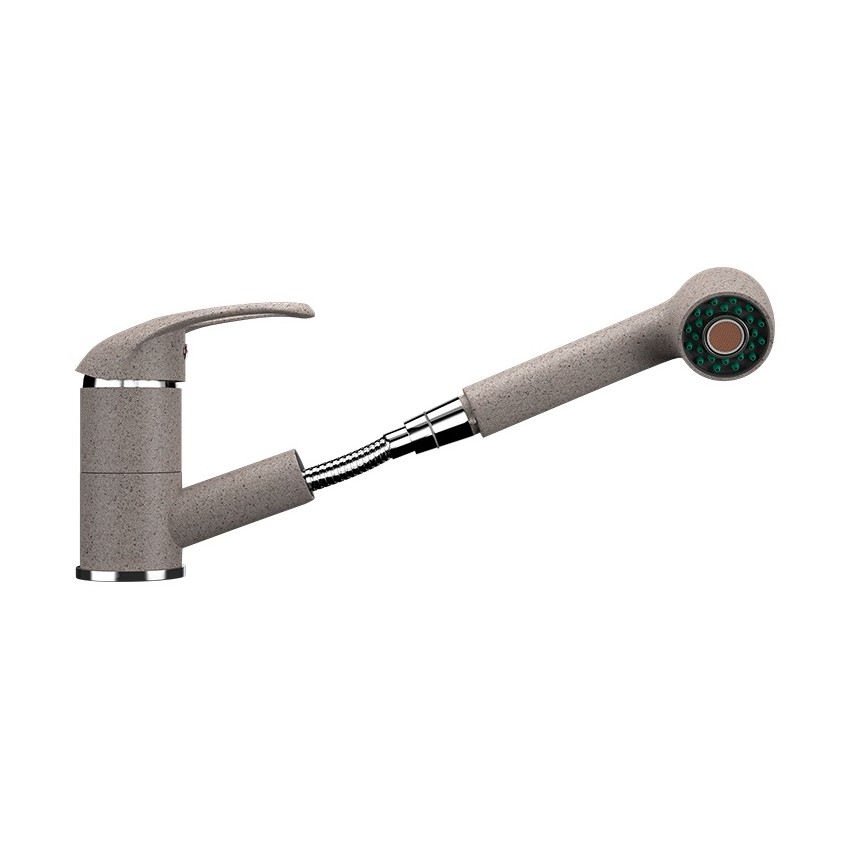 ULGRAN U-002 - кухонный смеситель с низким выдвижным изливом, имеющий два режима подачи воды: "стандартный" и "режим душ". Конструкция излива с выдвижным механизмом специально разработана для удобства мытья труднодоступных мест и негабаритной посуды (кастрюлей и сковород любой конфигурации), не прибегая к дополнительным ухищрениям. Также это хорошее решение для больших кухонных моек и моек с двумя чашами (двойных). Материал корпуса выполнен из высококачественной латуни, а окрашивание под "искусственный камень" в цвет мойки ULGRAN выполняется на собственном производстве, что позволяет идеально попасть в фирменный цвет ULGRAN. В качестве керамического картриджа используется известный бренд Wanhai диаметром 40 мм с высокой пропускной способностью в 500 тысяч циклов "открывания-закрывания". На подвижные части картриджа Wanhai нанесена специальная невымываемая силиконовая смазка, а керамические пластины изготовлены из 96% оксида алюминия, что, в сочетании с высоким качеством шлифовки обеспечивает долговечность, надежность, плавность хода рукоятки. Смеситель оборудован съемным пластиковым аэратором для экономии воды и поворотным изливом на 360 градусов. В комплектацию входят: керамический картридж Wanhai, гибкая подводка 450 мм, комплект крепежных элементов, выдвижная лейка с двумя режимами струи, технический паспорт и гарантийный талон. Заводская гарантия составляет 3 года на материал корпуса, 1 год на комплектующие к смесителю и 1 год на материал покрытия.