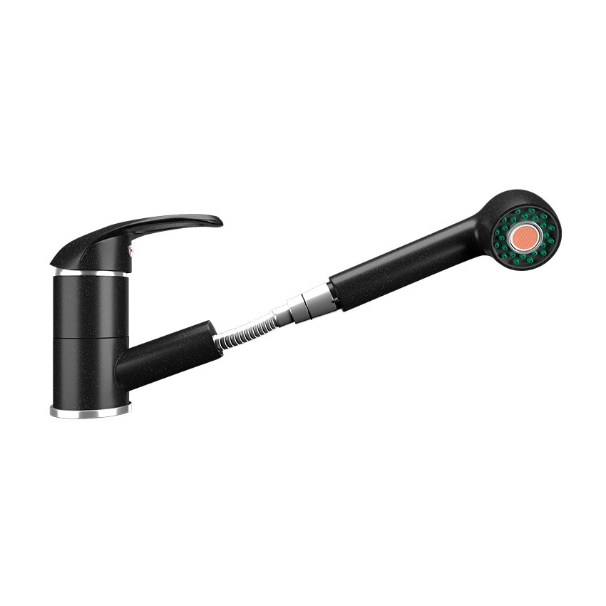ULGRAN U-002 - кухонный смеситель с низким выдвижным изливом, имеющий два режима подачи воды: "стандартный" и "режим душ". Конструкция излива с выдвижным механизмом специально разработана для удобства мытья труднодоступных мест и негабаритной посуды (кастрюлей и сковород любой конфигурации), не прибегая к дополнительным ухищрениям. Также это хорошее решение для больших кухонных моек и моек с двумя чашами (двойных). Материал корпуса выполнен из высококачественной латуни, а окрашивание под "искусственный камень" в цвет мойки ULGRAN выполняется на собственном производстве, что позволяет идеально попасть в фирменный цвет ULGRAN. В качестве керамического картриджа используется известный бренд Wanhai диаметром 40 мм с высокой пропускной способностью в 500 тысяч циклов "открывания-закрывания". На подвижные части картриджа Wanhai нанесена специальная невымываемая силиконовая смазка, а керамические пластины изготовлены из 96% оксида алюминия, что, в сочетании с высоким качеством шлифовки обеспечивает долговечность, надежность, плавность хода рукоятки. Смеситель оборудован съемным пластиковым аэратором для экономии воды и поворотным изливом на 360 градусов. В комплектацию входят: керамический картридж Wanhai, гибкая подводка 450 мм, комплект крепежных элементов, выдвижная лейка с двумя режимами струи, технический паспорт и гарантийный талон. Заводская гарантия составляет 3 года на материал корпуса, 1 год на комплектующие к смесителю и 1 год на материал покрытия.