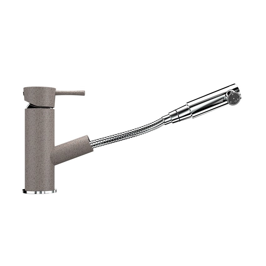 ULGRAN U-009 - кухонный смеситель с низким выдвижным изливом в виде металлической рукоятки (лейки). Конструкция излива с выдвижным механизмом специально разработана для удобства мытья труднодоступных мест и негабаритной посуды (кастрюлей и сковород любой конфигурации), не прибегая к дополнительным ухищрениям. Также это хорошее решение для больших кухонных моек и моек с двумя чашами (двойных). Материал корпуса выполнен из высококачественной латуни, а окрашивание под "искусственный камень" в цвет мойки ULGRAN выполняется на собственном производстве, что позволяет идеально попасть в фирменный цвет ULGRAN. В качестве керамического картриджа используется известный бренд Wanhai диаметром 35 мм с высокой пропускной способностью в 500 тысяч циклов "открывания-закрывания". На подвижные части картриджа Wanhai нанесена специальная невымываемая силиконовая смазка, а керамические пластины изготовлены из 96% оксида алюминия, что, в сочетании с высоким качеством шлифовки обеспечивает долговечность, надежность, плавность хода рукоятки. Смеситель оборудован съемным пластиковым аэратором для экономии воды и поворотным изливом на 360 градусов. В комплектацию входя: керамический картридж Wanhai, гибкая подводка 450 мм, комплект крепежных элементов, металлическая рукоятка (лейка), технический паспорт и гарантийный талон. Заводская гарантия составляет 3 года на материал корпуса, 1 год на комплектующие к смесителю и 1 год на материал покрытия.