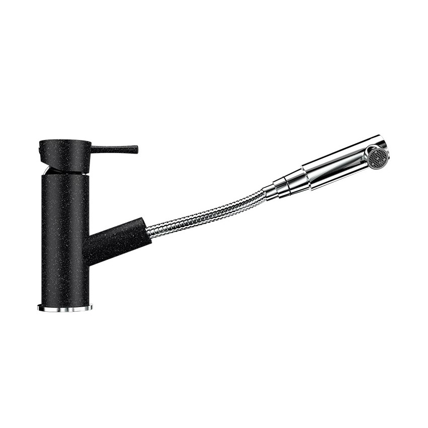ULGRAN U-009 - кухонный смеситель с низким выдвижным изливом в виде металлической рукоятки (лейки). Конструкция излива с выдвижным механизмом специально разработана для удобства мытья труднодоступных мест и негабаритной посуды (кастрюлей и сковород любой конфигурации), не прибегая к дополнительным ухищрениям. Также это хорошее решение для больших кухонных моек и моек с двумя чашами (двойных). Материал корпуса выполнен из высококачественной латуни, а окрашивание под "искусственный камень" в цвет мойки ULGRAN выполняется на собственном производстве, что позволяет идеально попасть в фирменный цвет ULGRAN. В качестве керамического картриджа используется известный бренд Wanhai диаметром 35 мм с высокой пропускной способностью в 500 тысяч циклов "открывания-закрывания". На подвижные части картриджа Wanhai нанесена специальная невымываемая силиконовая смазка, а керамические пластины изготовлены из 96% оксида алюминия, что, в сочетании с высоким качеством шлифовки обеспечивает долговечность, надежность, плавность хода рукоятки. Смеситель оборудован съемным пластиковым аэратором для экономии воды и поворотным изливом на 360 градусов. В комплектацию входя: керамический картридж Wanhai, гибкая подводка 450 мм, комплект крепежных элементов, металлическая рукоятка (лейка), технический паспорт и гарантийный талон. Заводская гарантия составляет 3 года на материал корпуса, 1 год на комплектующие к смесителю и 1 год на материал покрытия.
