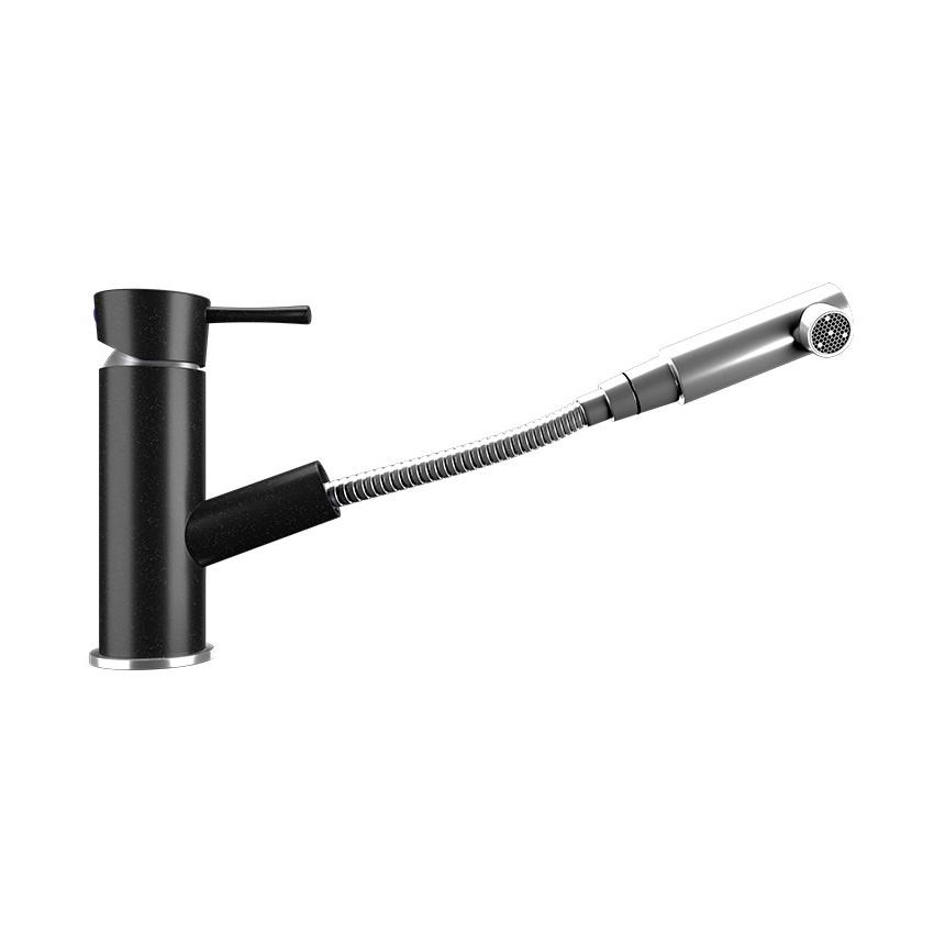 ULGRAN U-009 - кухонный смеситель с низким выдвижным изливом в виде металлической рукоятки (лейки). Конструкция излива с выдвижным механизмом специально разработана для удобства мытья труднодоступных мест и негабаритной посуды (кастрюлей и сковород любой конфигурации), не прибегая к дополнительным ухищрениям. Также это хорошее решение для больших кухонных моек и моек с двумя чашами (двойных). Материал корпуса выполнен из высококачественной латуни, а окрашивание под "искусственный камень" в цвет мойки ULGRAN выполняется на собственном производстве, что позволяет идеально попасть в фирменный цвет ULGRAN. В качестве керамического картриджа используется известный бренд Wanhai диаметром 35 мм с высокой пропускной способностью в 500 тысяч циклов "открывания-закрывания". На подвижные части картриджа Wanhai нанесена специальная невымываемая силиконовая смазка, а керамические пластины изготовлены из 96% оксида алюминия, что, в сочетании с высоким качеством шлифовки обеспечивает долговечность, надежность, плавность хода рукоятки. Смеситель оборудован съемным пластиковым аэратором для экономии воды и поворотным изливом на 360 градусов. В комплектацию входя: керамический картридж Wanhai, гибкая подводка 450 мм, комплект крепежных элементов, металлическая рукоятка (лейка), технический паспорт и гарантийный талон. Заводская гарантия составляет 3 года на материал корпуса, 1 год на комплектующие к смесителю и 1 год на материал покрытия.