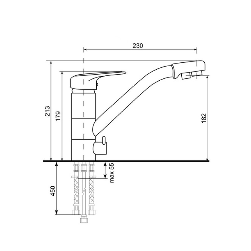 Комплектациясмеситель, подводка, крепежные элементы