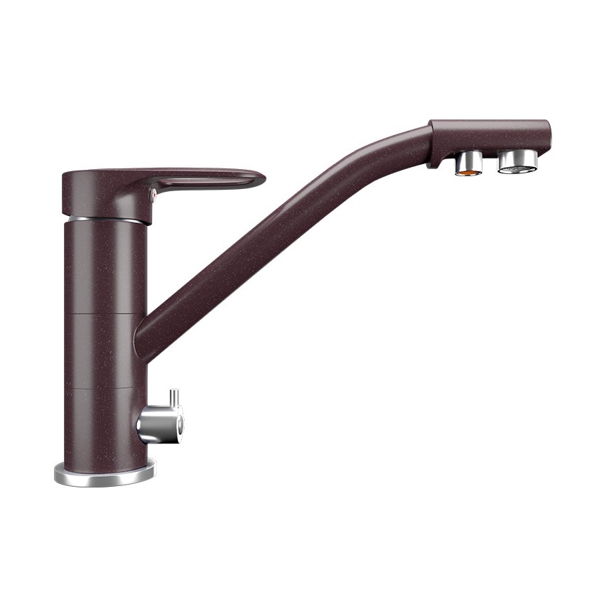 ULGRAN U-010 - высокоэргономичный кухонный смеситель с дополнительным краном для подключения фильтрованной воды, оснащенный кран-буксой с керамическими пластинами. Реализован тройной подвод воды через один излив: холодная, горячая и фильтрованная. Переход с одного подвода на другой производится поворотом рычага. Набор для соединения с фильтром входит в комплект . Система фильтрации приобретается дополнительно и монтируется под мойку, специальный индикатор сообщает о необходимости замены картриджа. Материал корпуса выполнен из высококачественной латуни, а окрашивание под "искусственный камень" в цвет мойки ULGRAN выполняется на собственном производстве, что позволяет идеально попасть в фирменный цвет ULGRAN. В качестве керамического картриджа используется известный бренд Wanhai диаметром 35 мм с высокой пропускной способностью в 500 тысяч циклов "открывания-закрывания". На подвижные части картриджа Wanhai нанесена специальная невымываемая силиконовая смазка, а керамические пластины изготовлены из 96% оксида алюминия, что, в сочетании с высоким качеством шлифовки обеспечивает долговечность, надежность, плавность хода рукоятки. Смеситель оборудован съемным пластиковым аэратором для экономии воды и поворотным изливом на 360 градусов. В комплектацию входя: керамический картридж Wanhai, гибкая подводка, комплект крепежных элементов, кран-букса с керамическими пластинами для дополнительного излива для фильтрованной воды, набор для подсоединения фильтра питьевой воды (гибкая подводка + переходник-цанга), технический паспорт и гарантийный талон. Заводская гарантия составляет 3 года на материал корпуса, 1 год на комплектующие к смесителю и 1 год на материал покрытия.
