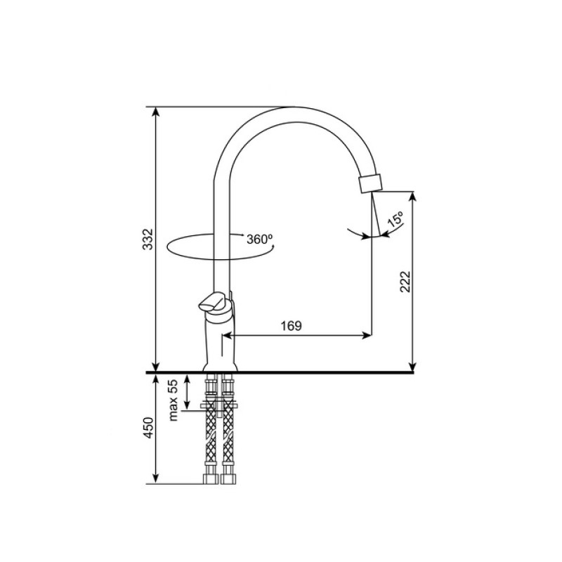 Комплектациясмеситель, подводка, крепежные элементы
