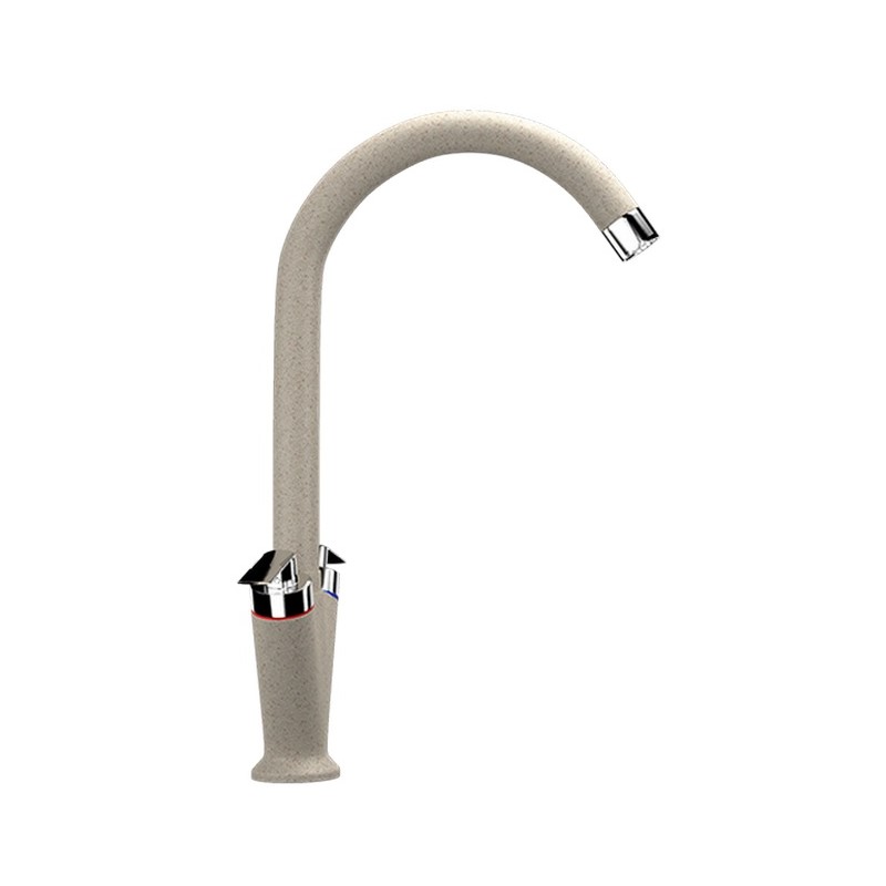 ULGRAN U-011 - классический кухонный двухрычажный смеситель с высоким поворотным изливом. Материал корпуса выполнен из высококачественной латуни, а окрашивание под "искусственный камень" в цвет мойки ULGRAN выполняется на собственном производстве, что позволяет идеально попасть в фирменный цвет ULGRAN. В качестве запорного клапана используется кран-букса с керамическими пластинами, на подвижные части которых нанесена специальная невымываемая силиконовая смазка. В свою очередь, сами керамические пластины изготовлены из 96% оксида алюминия, что, в сочетании с высоким качеством шлифовки обеспечивает долговечность, надежность, плавность хода рукоятки. Смеситель оборудован съемным пластиковым аэратором для экономии воды и поворотным изливом на 360 градусов. В комплектацию входят: кран-букса с керамическими пластинами, гибкая подводка 450 мм, комплект крепежных элементов, технический паспорт и гарантийный талон. Заводская гарантия составляет 3 года на материал корпуса, 1 год на комплектующие к смесителю и 1 год на материал покрытия.
