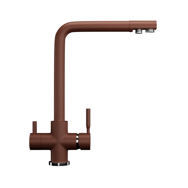 ULGRAN U-016 - высокоэргономичный кухонный смеситель с дополнительным краном для подключения фильтрованной воды, оснащенный кран-буксой с керамическими пластинами. Реализован тройной подвод воды через один излив: холодная, горячая и фильтрованная. Переход с одного подвода на другой производится поворотом рычага. Набор для соединения с фильтром входит в комплект . Система фильтрации приобретается дополнительно и монтируется под мойку, специальный индикатор сообщает о необходимости замены картриджа. Материал корпуса выполнен из высококачественной латуни, а окрашивание под "искусственный камень" в цвет мойки ULGRAN выполняется на собственном производстве, что позволяет идеально попасть в фирменный цвет ULGRAN. В качестве керамического картриджа используется известный бренд Wanhai диаметром 35 мм с высокой пропускной способностью в 500 тысяч циклов "открывания-закрывания". На подвижные части картриджа Wanhai нанесена специальная невымываемая силиконовая смазка, а керамические пластины изготовлены из 96% оксида алюминия, что, в сочетании с высоким качеством шлифовки обеспечивает долговечность, надежность, плавность хода рукоятки. Смеситель оборудован съемным пластиковым аэратором для экономии воды и поворотным изливом на 360 градусов. В комплектацию входят: керамический картридж Wanhai, гибкая подводка, комплект крепежных элементов, кран-букса с керамическими пластинами для дополнительного излива для фильтрованной воды, набор для подсоединения фильтра питьевой воды (гибкая подводка + переходник-цанга), технический паспорт и гарантийный талон. Заводская гарантия составляет 3 года на материал корпуса, 1 год на комплектующие к смесителю и 1 год на материал покрытия.