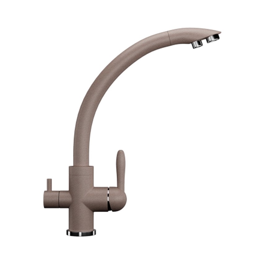 ULGRAN U-017 - современный кухонный смеситель с дополнительным краном для подключения фильтрованной воды, оснащенный кран-буксой с керамическими пластинами. Реализован тройной подвод воды через один излив: холодная, горячая и фильтрованная. Переход с одного подвода на другой производится поворотом рычага. Набор для соединения с фильтром входит в комплект . Система фильтрации приобретается дополнительно и монтируется под мойку, специальный индикатор сообщает о необходимости замены картриджа. Материал корпуса выполнен из высококачественной латуни, а окрашивание под "искусственный камень" в цвет мойки ULGRAN выполняется на собственном производстве, что позволяет идеально попасть в фирменный цвет ULGRAN. В качестве керамического картриджа используется известный бренд Wanhai диаметром 35 мм с высокой пропускной способностью в 500 тысяч циклов "открывания-закрывания". На подвижные части картриджа Wanhai нанесена специальная невымываемая силиконовая смазка, а керамические пластины изготовлены из 96% оксида алюминия, что, в сочетании с высоким качеством шлифовки обеспечивает долговечность, надежность, плавность хода рукоятки. Смеситель оборудован съемным пластиковым аэратором для экономии воды и поворотным изливом на 360 градусов. В комплектацию входя: керамический картридж Wanhai, гибкая подводка, комплект крепежных элементов, кран-букса с керамическими пластинами для дополнительного излива для фильтрованной воды, набор для подсоединения фильтра питьевой воды (гибкая подводка + переходник-цанга), технический паспорт и гарантийный талон. Заводская гарантия составляет 3 года на материал корпуса, 1 год на комплектующие к смесителю и 1 год на материал покрытия.