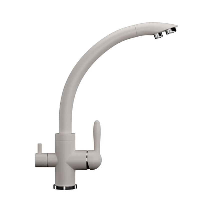 ULGRAN U-017 - современный кухонный смеситель с дополнительным краном для подключения фильтрованной воды, оснащенный кран-буксой с керамическими пластинами. Реализован тройной подвод воды через один излив: холодная, горячая и фильтрованная. Переход с одного подвода на другой производится поворотом рычага. Набор для соединения с фильтром входит в комплект . Система фильтрации приобретается дополнительно и монтируется под мойку, специальный индикатор сообщает о необходимости замены картриджа. Материал корпуса выполнен из высококачественной латуни, а окрашивание под "искусственный камень" в цвет мойки ULGRAN выполняется на собственном производстве, что позволяет идеально попасть в фирменный цвет ULGRAN. В качестве керамического картриджа используется известный бренд Wanhai диаметром 35 мм с высокой пропускной способностью в 500 тысяч циклов "открывания-закрывания". На подвижные части картриджа Wanhai нанесена специальная невымываемая силиконовая смазка, а керамические пластины изготовлены из 96% оксида алюминия, что, в сочетании с высоким качеством шлифовки обеспечивает долговечность, надежность, плавность хода рукоятки. Смеситель оборудован съемным пластиковым аэратором для экономии воды и поворотным изливом на 360 градусов. В комплектацию входя: керамический картридж Wanhai, гибкая подводка, комплект крепежных элементов, кран-букса с керамическими пластинами для дополнительного излива для фильтрованной воды, набор для подсоединения фильтра питьевой воды (гибкая подводка + переходник-цанга), технический паспорт и гарантийный талон. Заводская гарантия составляет 3 года на материал корпуса, 1 год на комплектующие к смесителю и 1 год на материал покрытия.