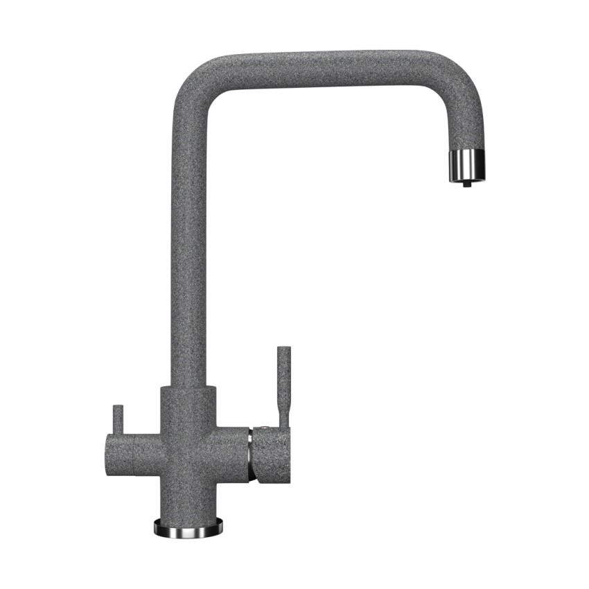 ULGRAN U-019 - современный кухонный смеситель с дополнительным краном для подключения фильтрованной воды, оснащенный кран-буксой с керамическими пластинами. Реализован тройной подвод воды через один излив: холодная, горячая и фильтрованная. Переход с одного подвода на другой производится поворотом рычага. Набор для соединения с фильтром входит в комплект . Система фильтрации приобретается дополнительно и монтируется под мойку, специальный индикатор сообщает о необходимости замены картриджа. Материал корпуса выполнен из высококачественной латуни, а окрашивание под "искусственный камень" в цвет мойки ULGRAN выполняется на собственном производстве, что позволяет идеально попасть в фирменный цвет ULGRAN. В качестве керамического картриджа используется известный бренд Wanhai диаметром 35 мм с высокой пропускной способностью в 500 тысяч циклов "открывания-закрывания". На подвижные части картриджа Wanhai нанесена специальная невымываемая силиконовая смазка, а керамические пластины изготовлены из 96% оксида алюминия, что, в сочетании с высоким качеством шлифовки обеспечивает долговечность, надежность, плавность хода рукоятки. Смеситель оборудован съемным пластиковым аэратором для экономии воды и поворотным изливом на 360 градусов. В комплектацию входя: керамический картридж Wanhai, гибкая подводка, комплект крепежных элементов, кран-букса с керамическими пластинами для дополнительного излива для фильтрованной воды, набор для подсоединения фильтра питьевой воды (гибкая подводка + переходник-цанга), технический паспорт и гарантийный талон. Заводская гарантия составляет 3 года на материал корпуса, 1 год на комплектующие к смесителю и 1 год на материал покрытия.
