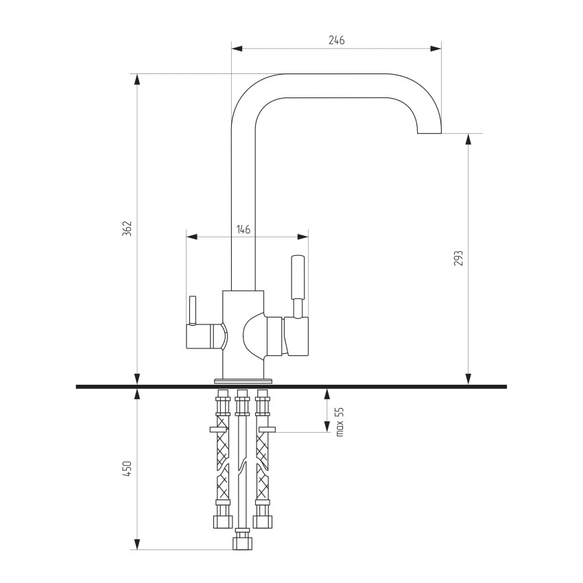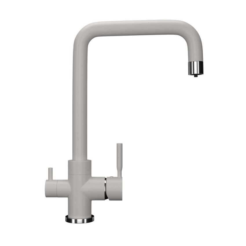 ULGRAN U-019 - современный кухонный смеситель с дополнительным краном для подключения фильтрованной воды, оснащенный кран-буксой с керамическими пластинами. Реализован тройной подвод воды через один излив: холодная, горячая и фильтрованная. Переход с одного подвода на другой производится поворотом рычага. Набор для соединения с фильтром входит в комплект . Система фильтрации приобретается дополнительно и монтируется под мойку, специальный индикатор сообщает о необходимости замены картриджа. Материал корпуса выполнен из высококачественной латуни, а окрашивание под "искусственный камень" в цвет мойки ULGRAN выполняется на собственном производстве, что позволяет идеально попасть в фирменный цвет ULGRAN. В качестве керамического картриджа используется известный бренд Wanhai диаметром 35 мм с высокой пропускной способностью в 500 тысяч циклов "открывания-закрывания". На подвижные части картриджа Wanhai нанесена специальная невымываемая силиконовая смазка, а керамические пластины изготовлены из 96% оксида алюминия, что, в сочетании с высоким качеством шлифовки обеспечивает долговечность, надежность, плавность хода рукоятки. Смеситель оборудован съемным пластиковым аэратором для экономии воды и поворотным изливом на 360 градусов. В комплектацию входя: керамический картридж Wanhai, гибкая подводка, комплект крепежных элементов, кран-букса с керамическими пластинами для дополнительного излива для фильтрованной воды, набор для подсоединения фильтра питьевой воды (гибкая подводка + переходник-цанга), технический паспорт и гарантийный талон. Заводская гарантия составляет 3 года на материал корпуса, 1 год на комплектующие к смесителю и 1 год на материал покрытия.
