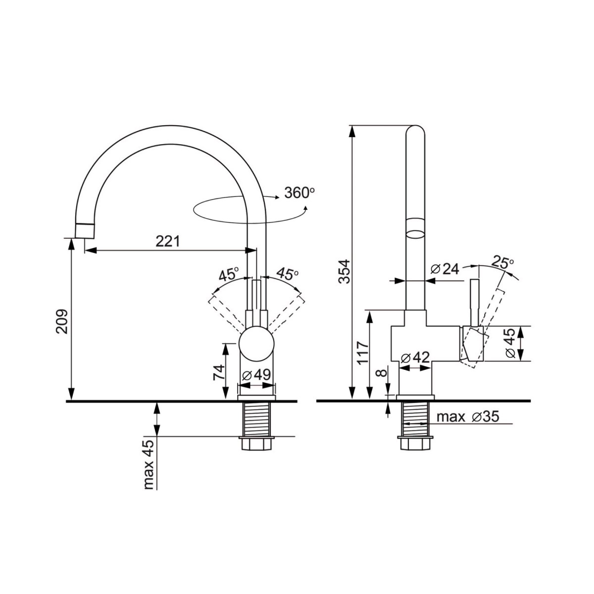 Высота излива, см20.9