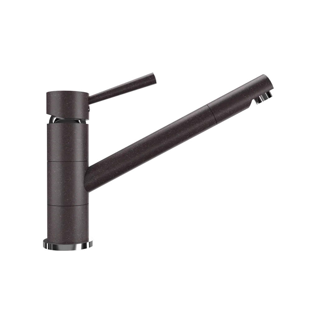 ULGRAN U-025 – удобный классический кухонный смеситель с низким поворотным изливом. Материал корпуса выполнен из высококачественной латуни, а окрашивание под «искусственный камень» в цвет мойки ULGRAN выполняется на собственном производстве, что позволяет идеально попасть в фирменный цвет ULGRAN. В качестве керамического картриджа используется известный бренд Wanhai диаметром 40 мм с высокой пропускной способностью в 500 тысяч циклов «открывания-закрывания».