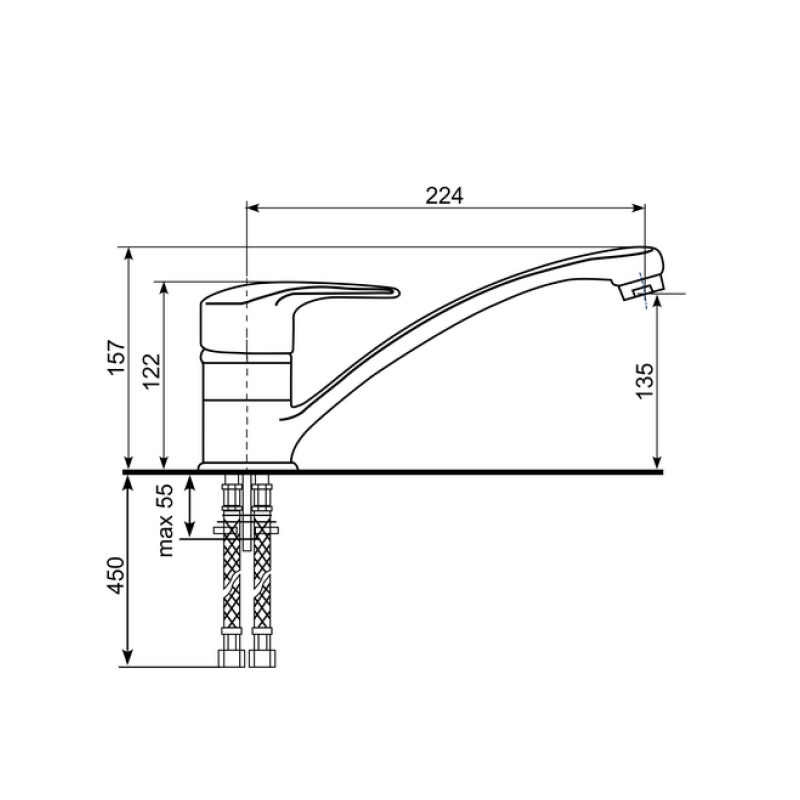 Комплектациясмеситель, подводка, крепежные элементы
