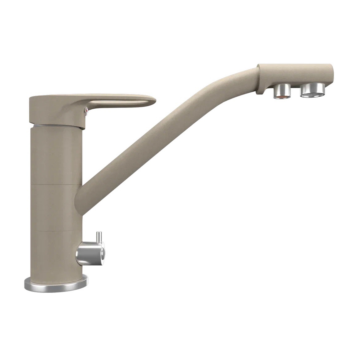 ULGRAN Quartz UQ-010 - высокоэргономичный кухонный смеситель с дополнительным краном для подключения фильтрованной воды, оснащенный кран-буксой с керамическими пластинами. Реализован тройной подвод воды через один излив: холодная, горячая и фильтрованная. Переход с одного подвода на другой производится поворотом рычага. Набор для соединения с фильтром входит в комплект . Система фильтрации приобретается дополнительно и монтируется под мойку, специальный индикатор сообщает о необходимости замены картриджа. Материал корпуса выполнен из высококачественной латуни, а окрашивание под "искусственный камень" в цвет мойки ULGRAN Quartz выполняется на собственном производстве, что позволяет идеально попасть в фирменный цвет ULGRAN Quart. В качестве керамического картриджа используется известный бренд Wanhai диаметром 35 мм с высокой пропускной способностью в 500 тысяч циклов "открывания-закрывания". На подвижные части картриджа Wanhai нанесена специальная невымываемая силиконовая смазка, а керамические пластины изготовлены из 96% оксида алюминия, что, в сочетании с высоким качеством шлифовки обеспечивает долговечность, надежность, плавность хода рукоятки. Смеситель оборудован съемным пластиковым аэратором для экономии воды и поворотным изливом на 360 градусов. В комплектацию входя: керамический картридж Wanhai, гибкая подводка, комплект крепежных элементов, кран-букса с керамическими пластинами для дополнительного излива для фильтрованной воды, набор для подсоединения фильтра питьевой воды (гибкая подводка + переходник-цанга), технический паспорт и гарантийный талон. Заводская гарантия составляет 3 года на материал корпуса, 1 год на комплектующие к смесителю и 1 год на материал покрытия.