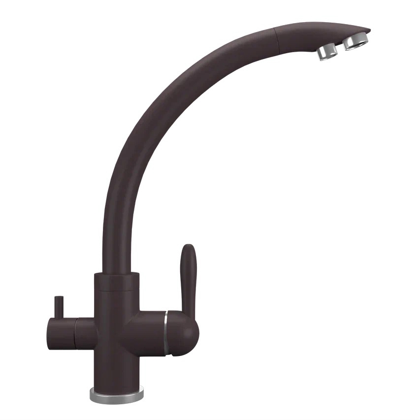 ULGRAN Quartz UQ-017 - современный кухонный смеситель с дополнительным краном для подключения фильтрованной воды, оснащенный кран-буксой с керамическими пластинами. Реализован тройной подвод воды через один излив: холодная, горячая и фильтрованная. Переход с одного подвода на другой производится поворотом рычага. Набор для соединения с фильтром входит в комплект . Система фильтрации приобретается дополнительно и монтируется под мойку, специальный индикатор сообщает о необходимости замены картриджа. Материал корпуса выполнен из высококачественной латуни, а окрашивание под "искусственный камень" в цвет мойки ULGRAN Quartz выполняется на собственном производстве, что позволяет идеально попасть в фирменный цветULGRAN Quartz. В качестве керамического картриджа используется известный бренд Wanhai диаметром 35 мм с высокой пропускной способностью в 500 тысяч циклов "открывания-закрывания". На подвижные части картриджа Wanhai нанесена специальная невымываемая силиконовая смазка, а керамические пластины изготовлены из 96% оксида алюминия, что, в сочетании с высоким качеством шлифовки обеспечивает долговечность, надежность, плавность хода рукоятки. Смеситель оборудован съемным пластиковым аэратором для экономии воды и поворотным изливом на 360 градусов. В комплектацию входя: керамический картридж Wanhai, гибкая подводка, комплект крепежных элементов, кран-букса с керамическими пластинами для дополнительного излива для фильтрованной воды, набор для подсоединения фильтра питьевой воды (гибкая подводка + переходник-цанга), технический паспорт и гарантийный талон. Заводская гарантия составляет 3 года на материал корпуса, 1 год на комплектующие к смесителю и 1 год на материал покрытия.
