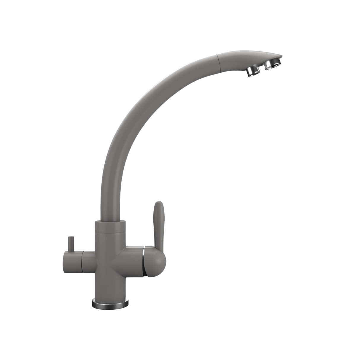 ULGRAN Quartz UQ-017 - современный кухонный смеситель с дополнительным краном для подключения фильтрованной воды, оснащенный кран-буксой с керамическими пластинами. Реализован тройной подвод воды через один излив: холодная, горячая и фильтрованная. Переход с одного подвода на другой производится поворотом рычага. Набор для соединения с фильтром входит в комплект . Система фильтрации приобретается дополнительно и монтируется под мойку, специальный индикатор сообщает о необходимости замены картриджа. Материал корпуса выполнен из высококачественной латуни, а окрашивание под "искусственный камень" в цвет мойки ULGRAN Quartz выполняется на собственном производстве, что позволяет идеально попасть в фирменный цветULGRAN Quartz. В качестве керамического картриджа используется известный бренд Wanhai диаметром 35 мм с высокой пропускной способностью в 500 тысяч циклов "открывания-закрывания". На подвижные части картриджа Wanhai нанесена специальная невымываемая силиконовая смазка, а керамические пластины изготовлены из 96% оксида алюминия, что, в сочетании с высоким качеством шлифовки обеспечивает долговечность, надежность, плавность хода рукоятки. Смеситель оборудован съемным пластиковым аэратором для экономии воды и поворотным изливом на 360 градусов. В комплектацию входя: керамический картридж Wanhai, гибкая подводка, комплект крепежных элементов, кран-букса с керамическими пластинами для дополнительного излива для фильтрованной воды, набор для подсоединения фильтра питьевой воды (гибкая подводка + переходник-цанга), технический паспорт и гарантийный талон. Заводская гарантия составляет 3 года на материал корпуса, 1 год на комплектующие к смесителю и 1 год на материал покрытия.