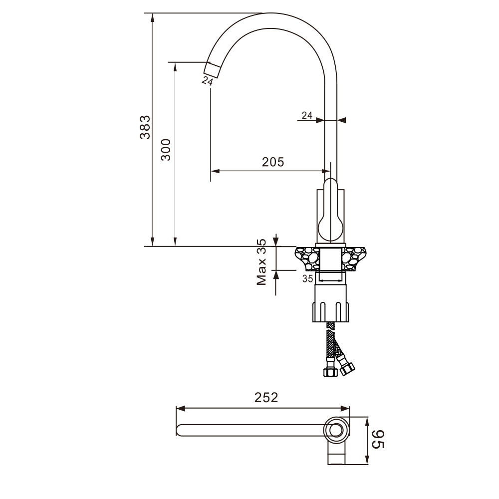 Материал: нержавеющая сталь SUS304. Цвет: сатин. Поворотный излив. Керамический картридж 35 мм c противошумной вставкой. ЭКО аэратор 9 л/мин. Гибкая подводка EPDM в оплетке из нержавеющей стали 1/2" 50 см. Пьедестал из нержавеющей стали. Крепеж Easy Fix из нерж. стали