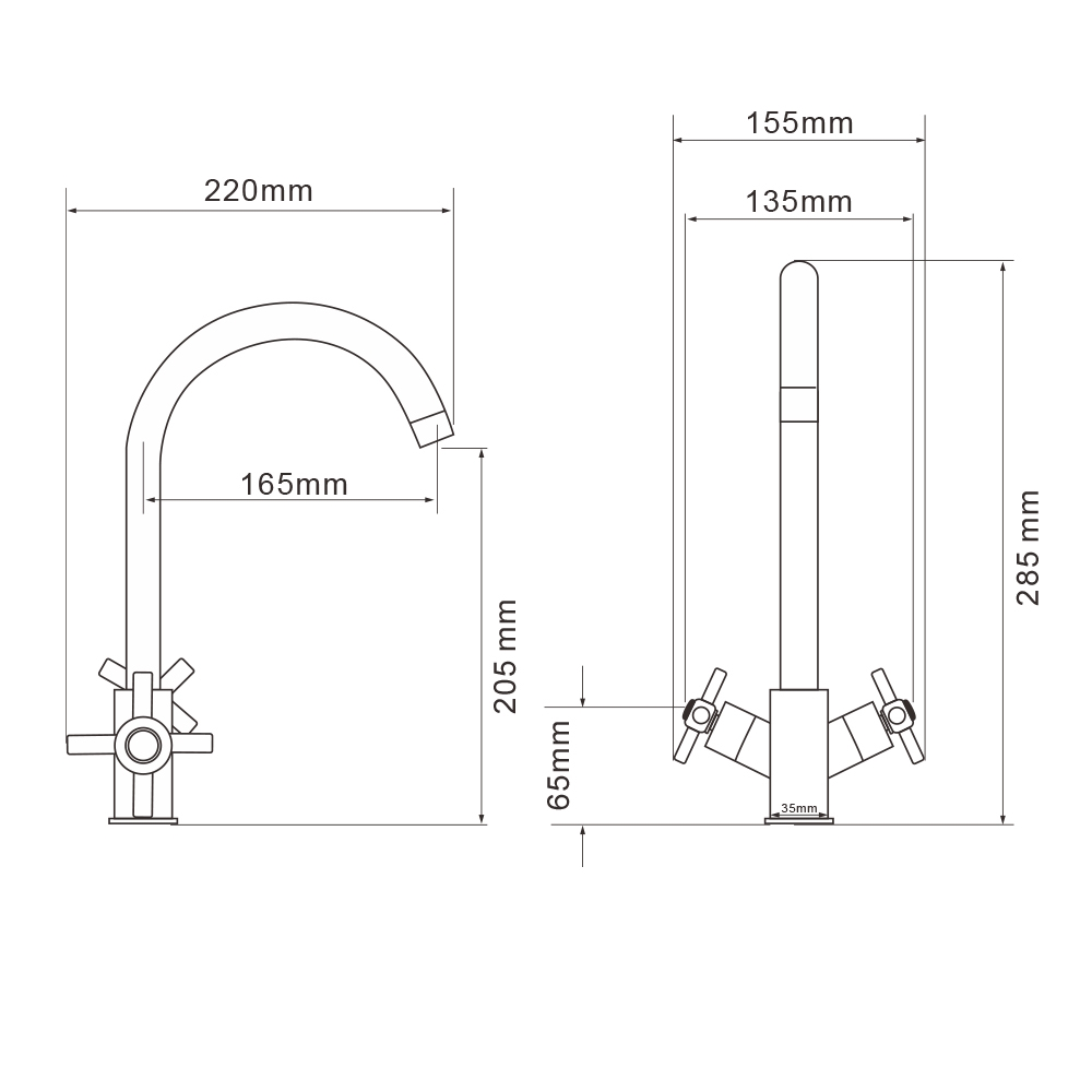 Этот кухонный смеситель изготовлен из высококачественной латуни, что обеспечивает долговечность и устойчивость к коррозии. Ваш смеситель будет радовать вас своим внешним видом и надежностью долгие годы.
