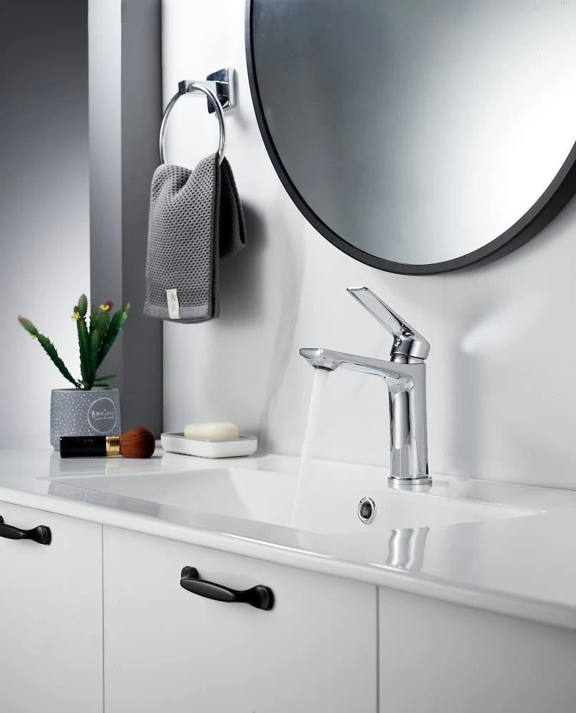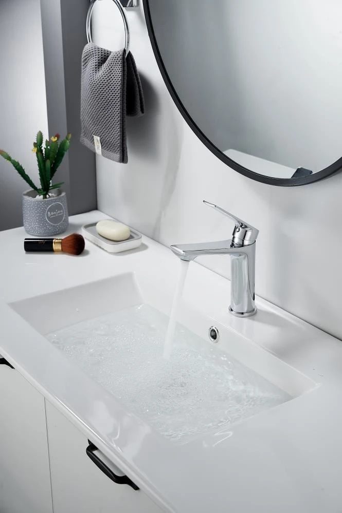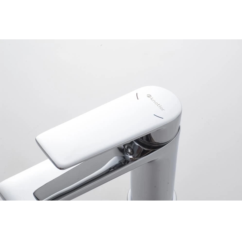 Изготовленный из прочной латуни, этот кран для умывальника обеспечивает долговечность и надёжность в использовании, а также устойчивость к механическим повреждениям. Механизм смесителя для раковины KN-60 основан на керамическом картридже с рычажным управлением, что гарантирует лёгкость и точность регулировки температуры и напора воды.
