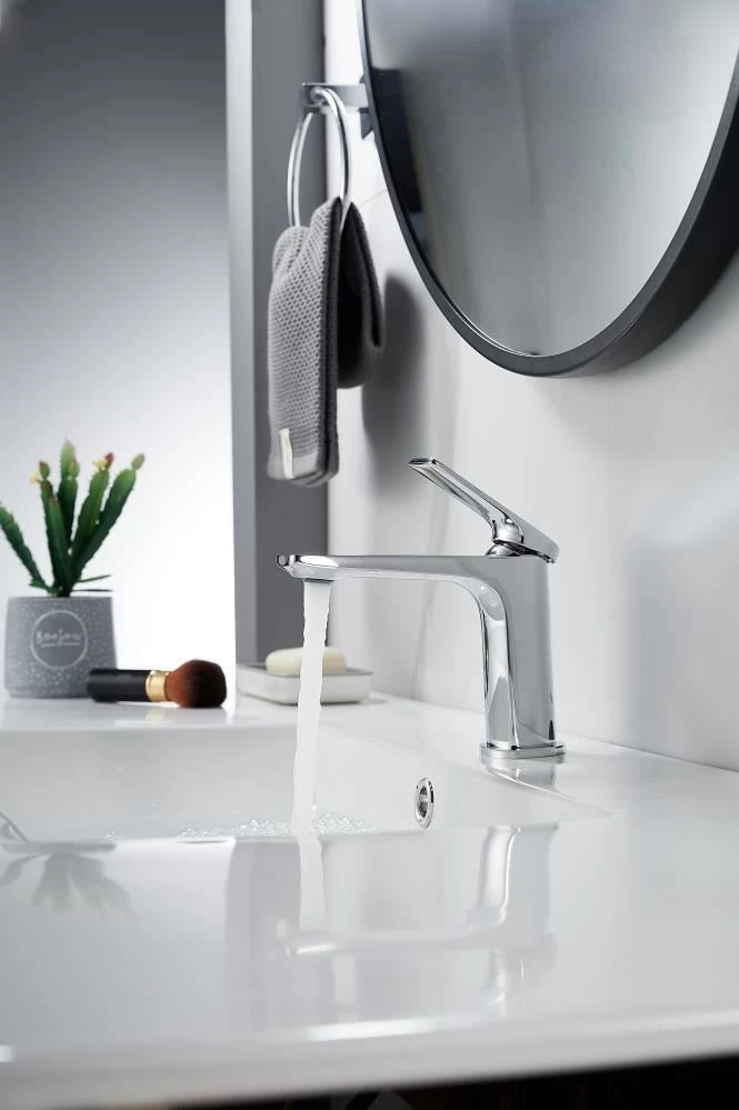 Изготовленный из прочной латуни, этот кран для умывальника обеспечивает долговечность и надёжность в использовании, а также устойчивость к механическим повреждениям. Механизм смесителя для раковины KN-70 основан на керамическом картридже с рычажным управлением, что гарантирует лёгкость и точность регулировки температуры и напора воды.