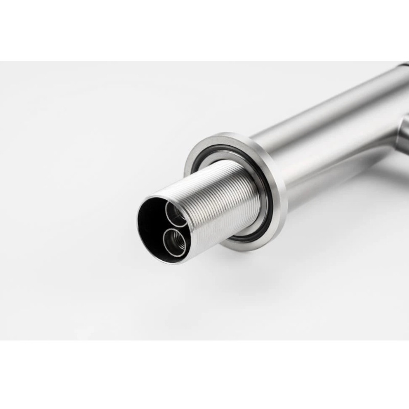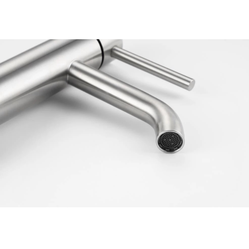 Изготовленный из высококачественной нержавеющей стали, этот кран для умывальника обеспечивает долговечность и надёжность в использовании, а также устойчивость к механическим повреждениям. Механизм смесителя для раковины SS-20 основан на керамическом картридже с рычажным управлением, что гарантирует лёгкость и точность регулировки температуры и напора воды.