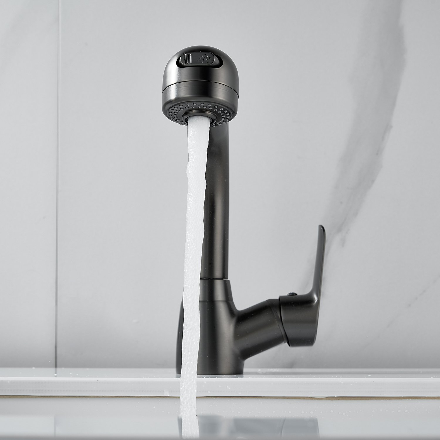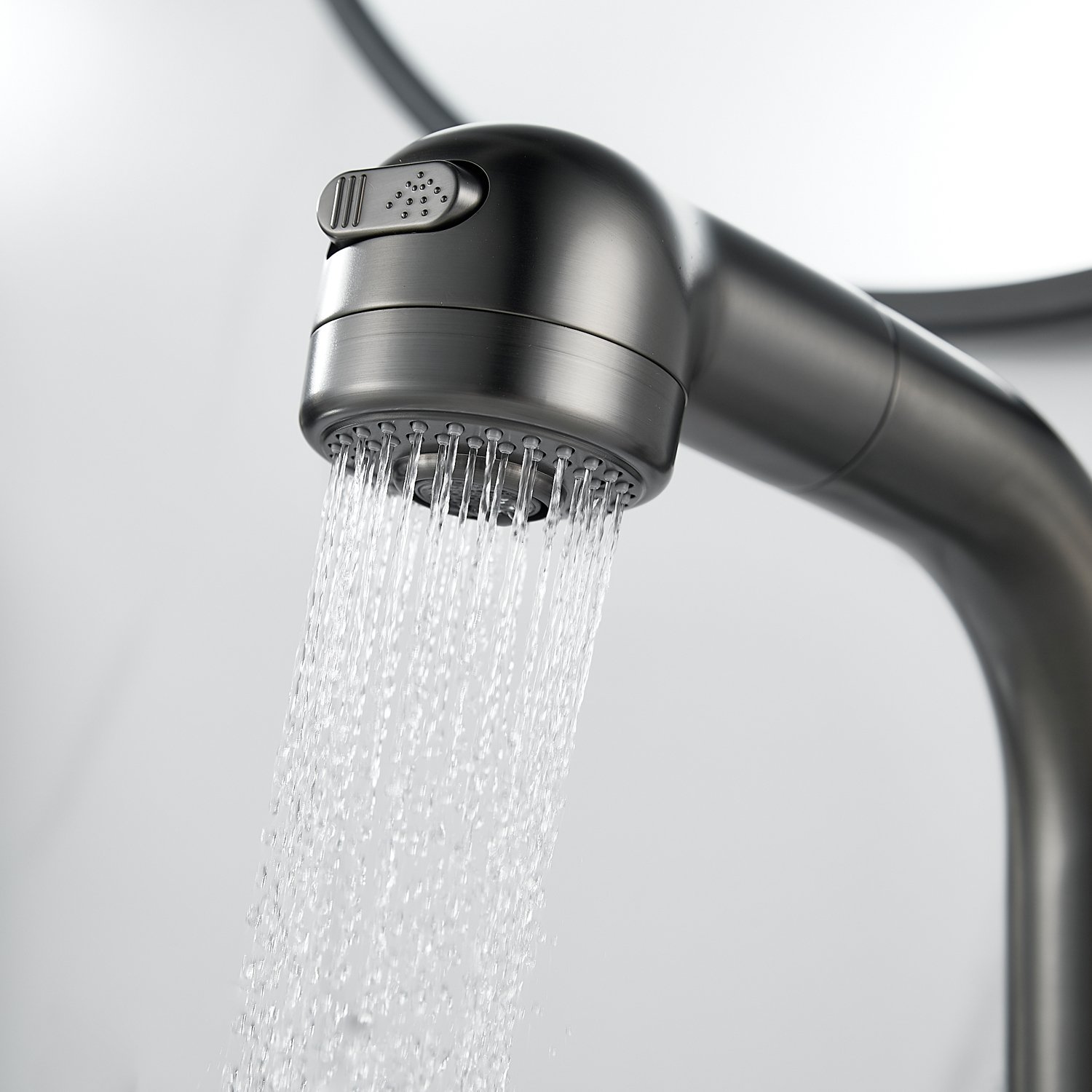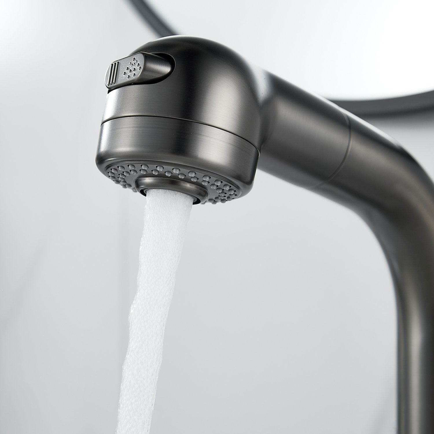 Смеситель оснащён выдвижным и поворотным изливом с режимом «душ», который позволяет выбирать между обычной струёй воды и мягкой душевой насадкой. Благодаря этому вы сможете легко и быстро настроить нужный режим в зависимости от ваших потребностей и предпочтений.