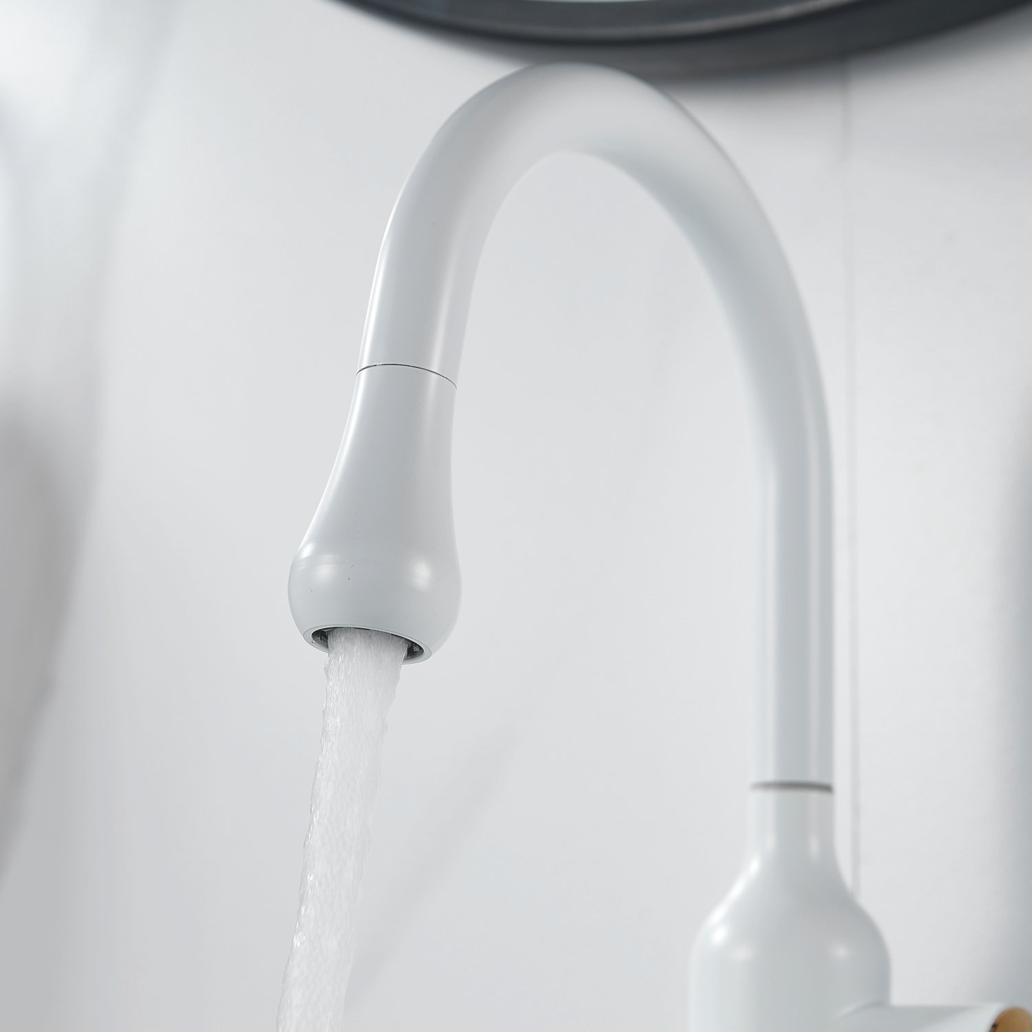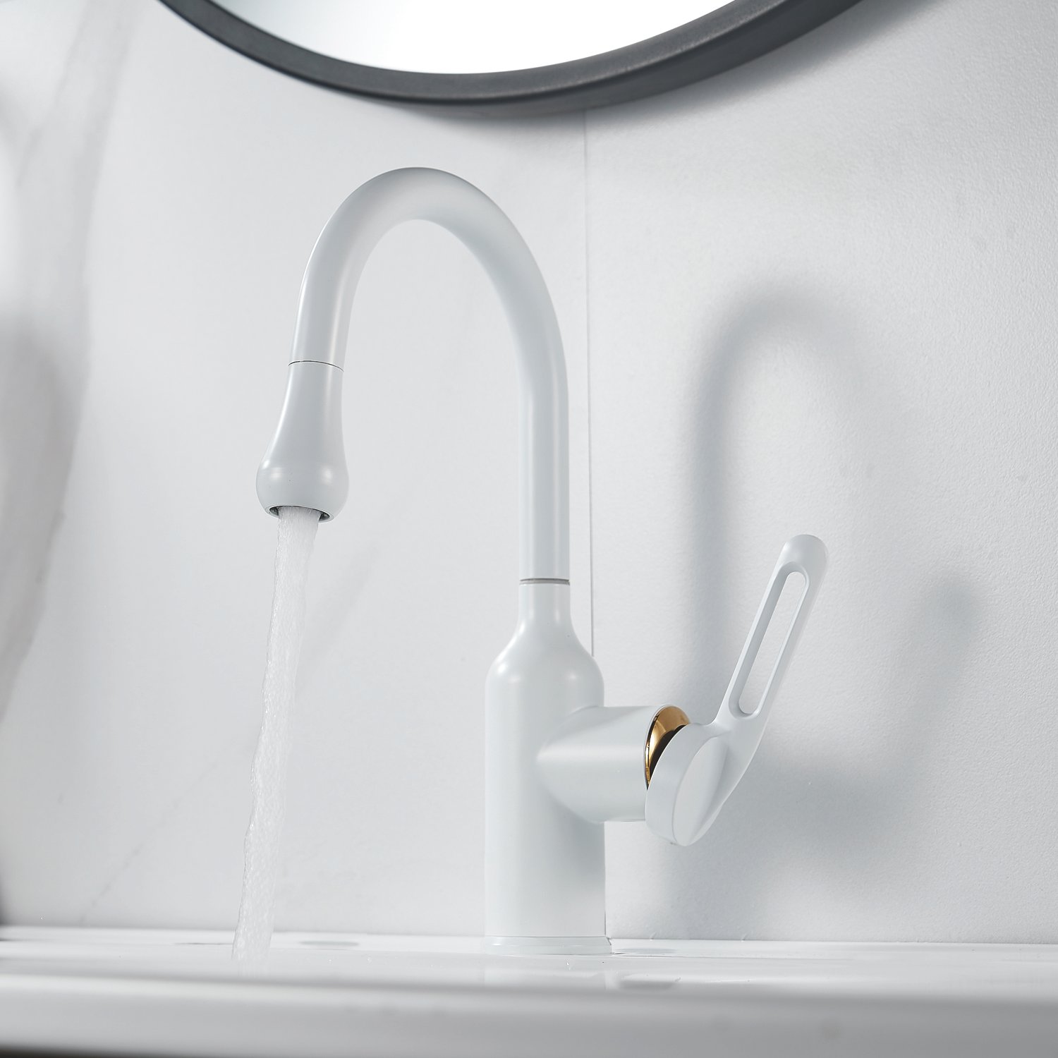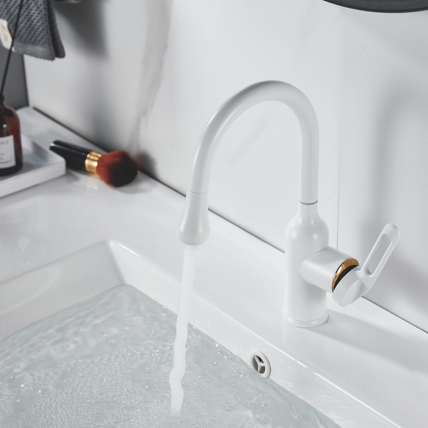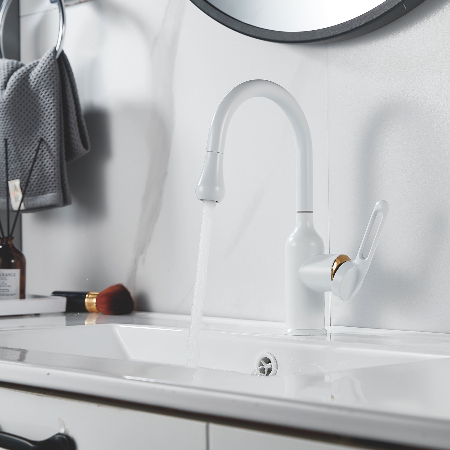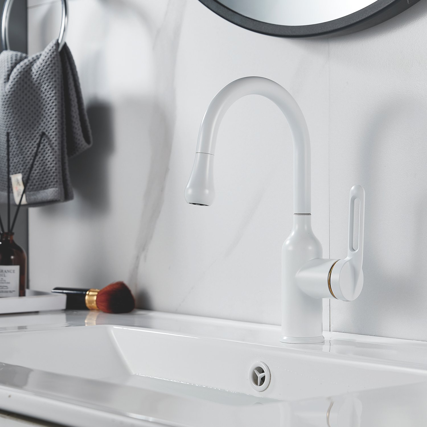 Смеситель для раковины Raffine F101C в белом цвете — это стильное и надёжное решение для вашей ванной комнаты. Изготовленный из высококачественной нержавеющей стали, он обладает прочностью и долговечностью. Поворотный излив с аэратором обеспечивает комфортное использование и экономит воду. Рычажное управление и керамический картридж гарантируют плавное и точное регулирование температуры и напора воды. Монтаж при помощи гайки и гибкая подводка в комплекте облегчают установку. Гарантия на изделие составляет 5 лет.