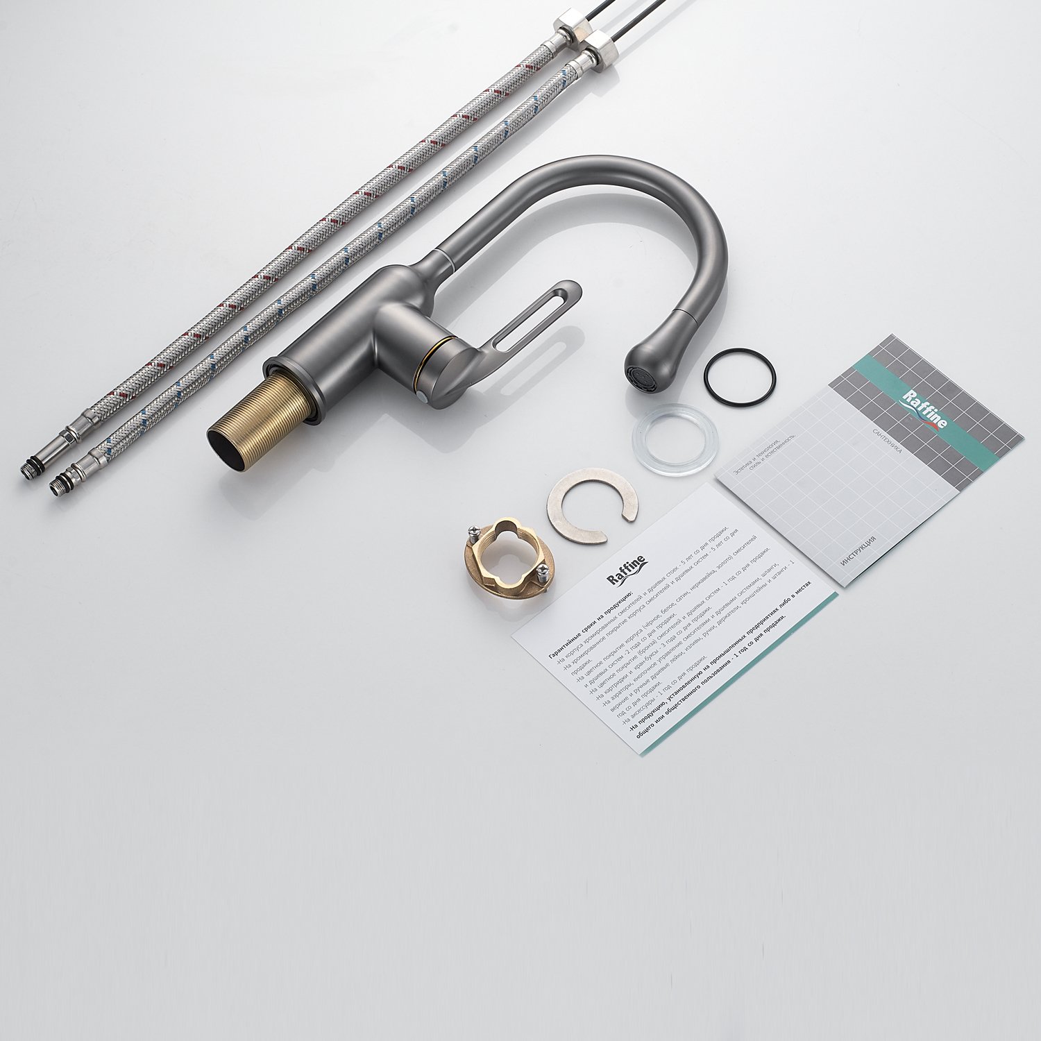 Смеситель для раковины Raffine F101T в цвете "оружейная сталь" — это стильное и надёжное решение для вашей ванной комнаты. Изготовленный из высококачественной нержавеющей стали, он обладает прочностью и долговечностью. Поворотный излив с аэратором обеспечивает комфортное использование и экономит воду. Рычажное управление и керамический картридж гарантируют плавное и точное регулирование температуры и напора воды. Монтаж при помощи гайки и гибкая подводка в комплекте облегчают установку. Гарантия на изделие составляет 5 лет.