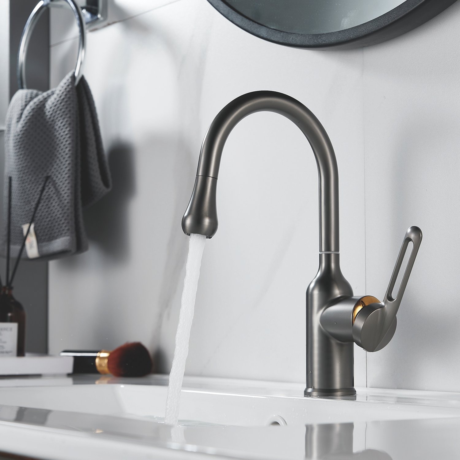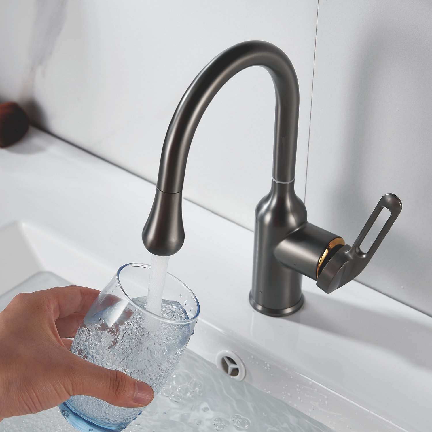 Смеситель для раковины Raffine F101T, оружейная сталь
