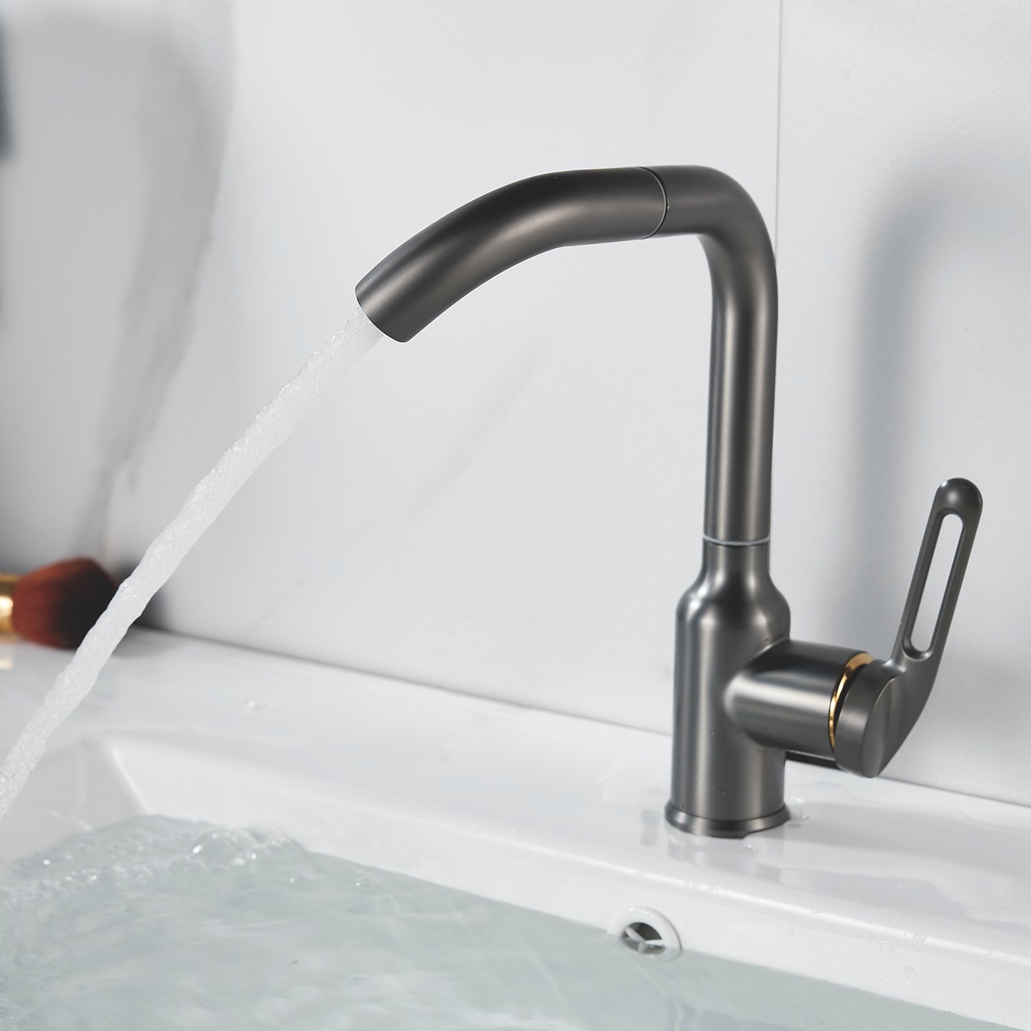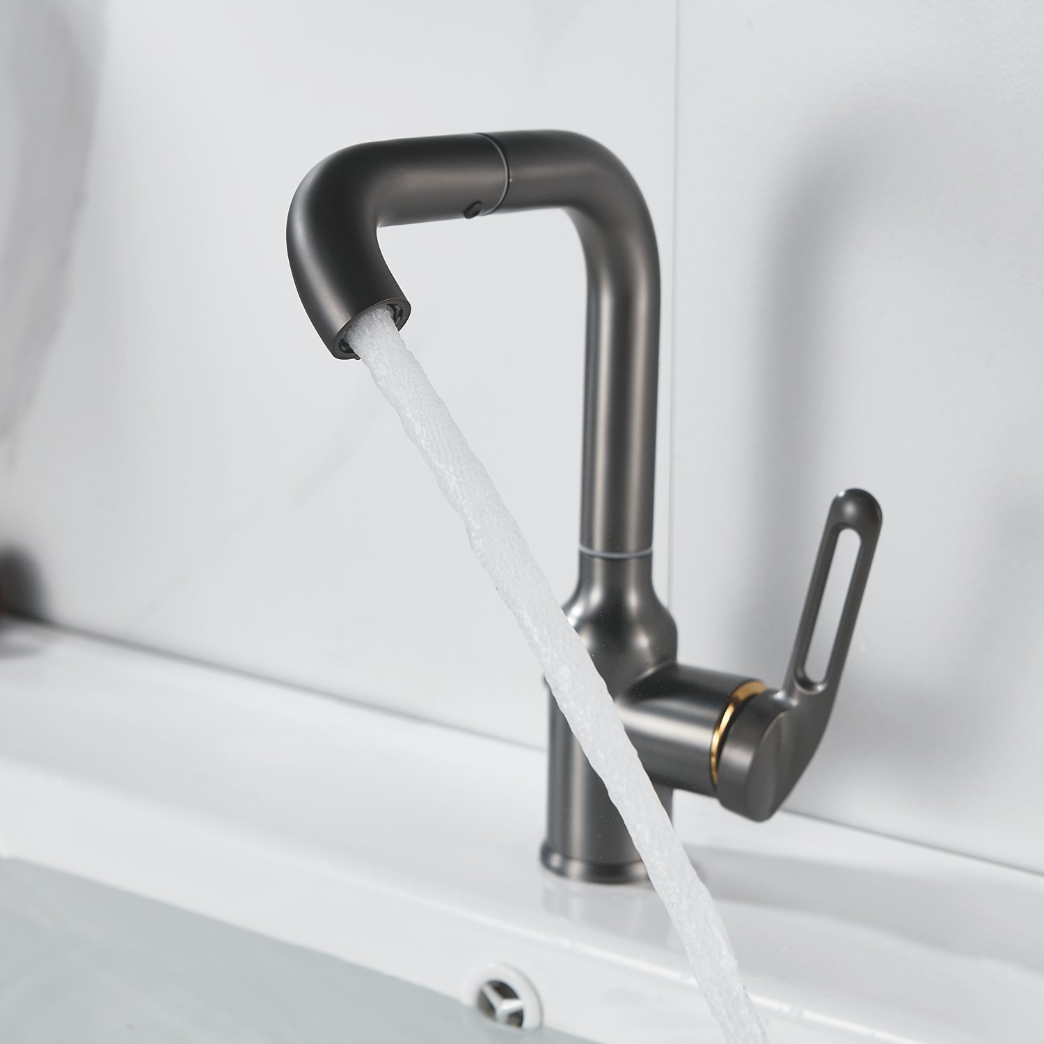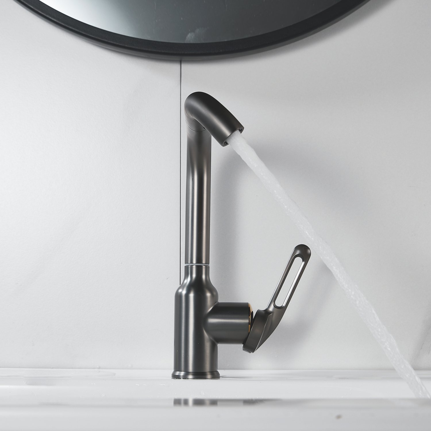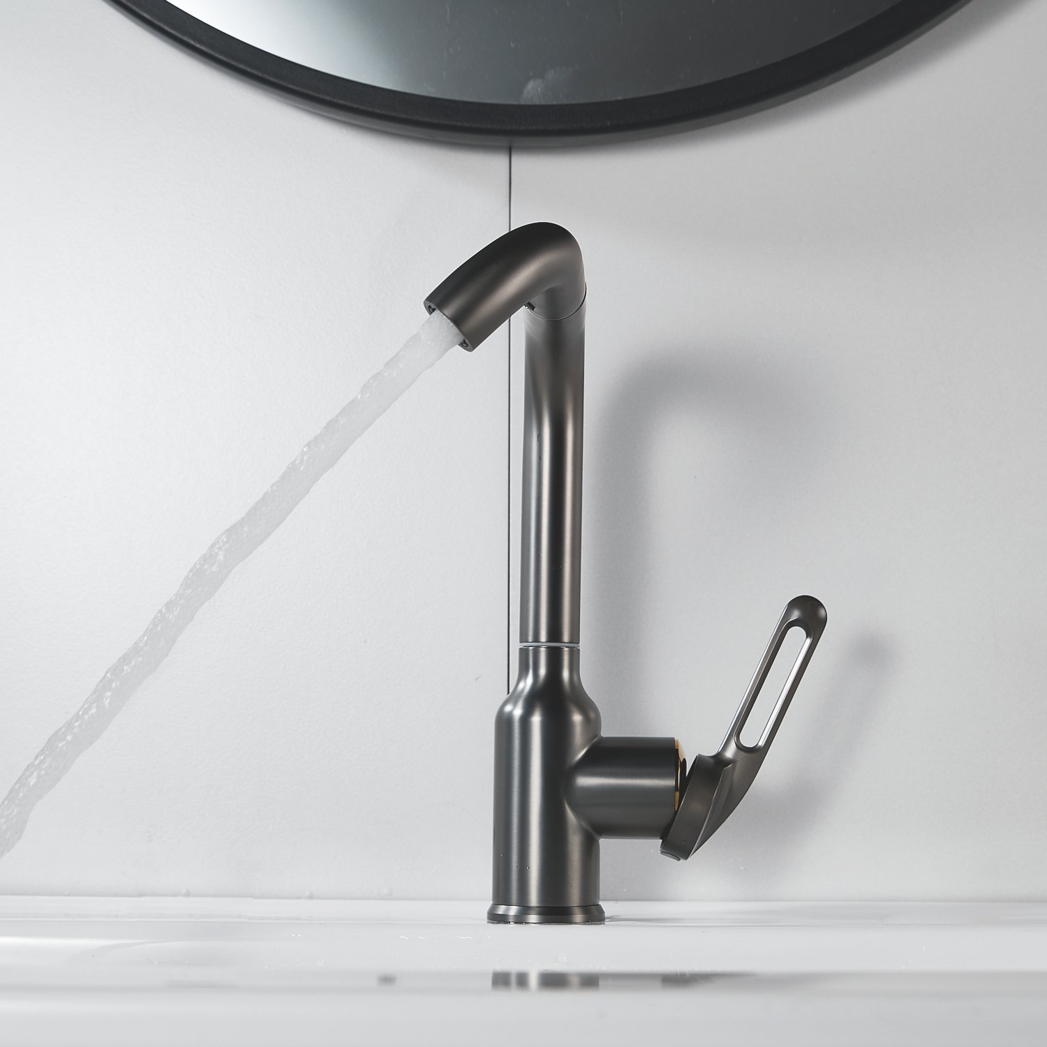 Смеситель для раковины Raffine F201T в цвете "оружейная сталь" — стильное и надёжное решение для вашей ванной комнаты. Изготовлен из высококачественной нержавеющей стали, что гарантирует его прочность и долговечность.
